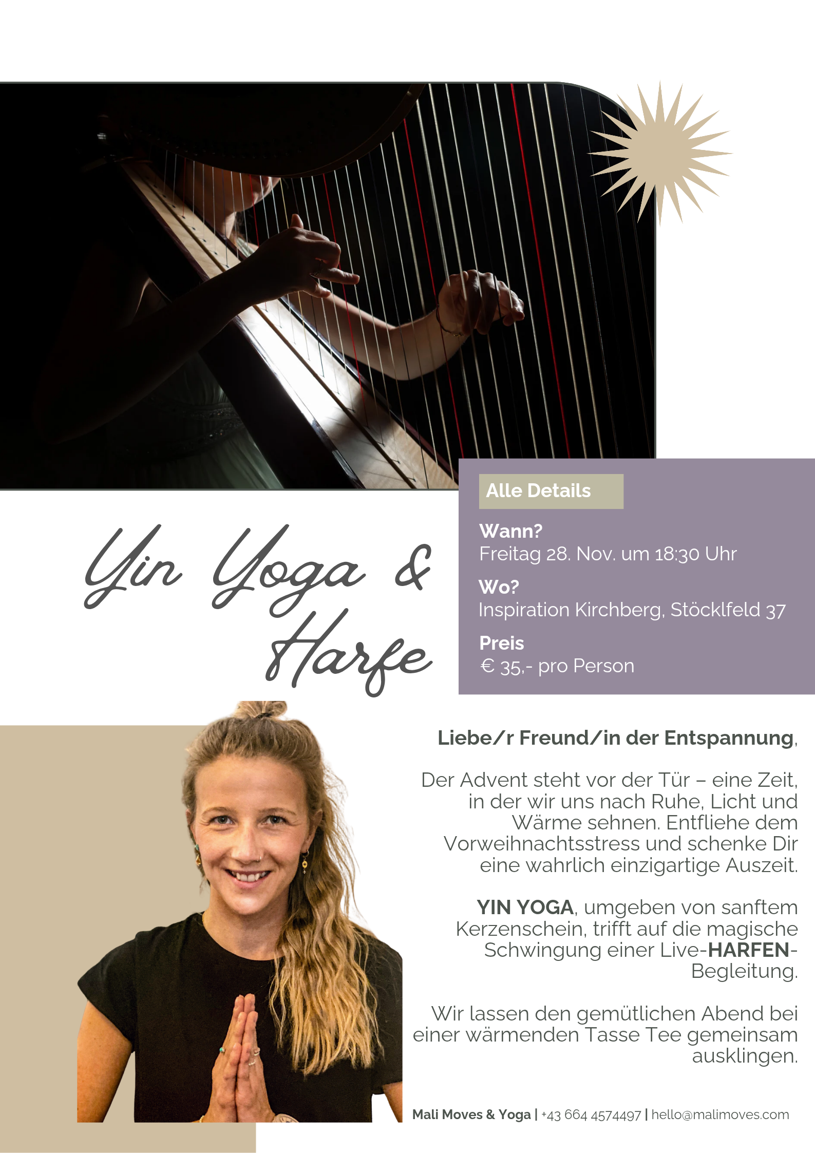 YIN YOGA, umgeben von sanftem Kerzenschein, trifft auf die magische Schwingung einer Live-HARFEN-Begleitung.