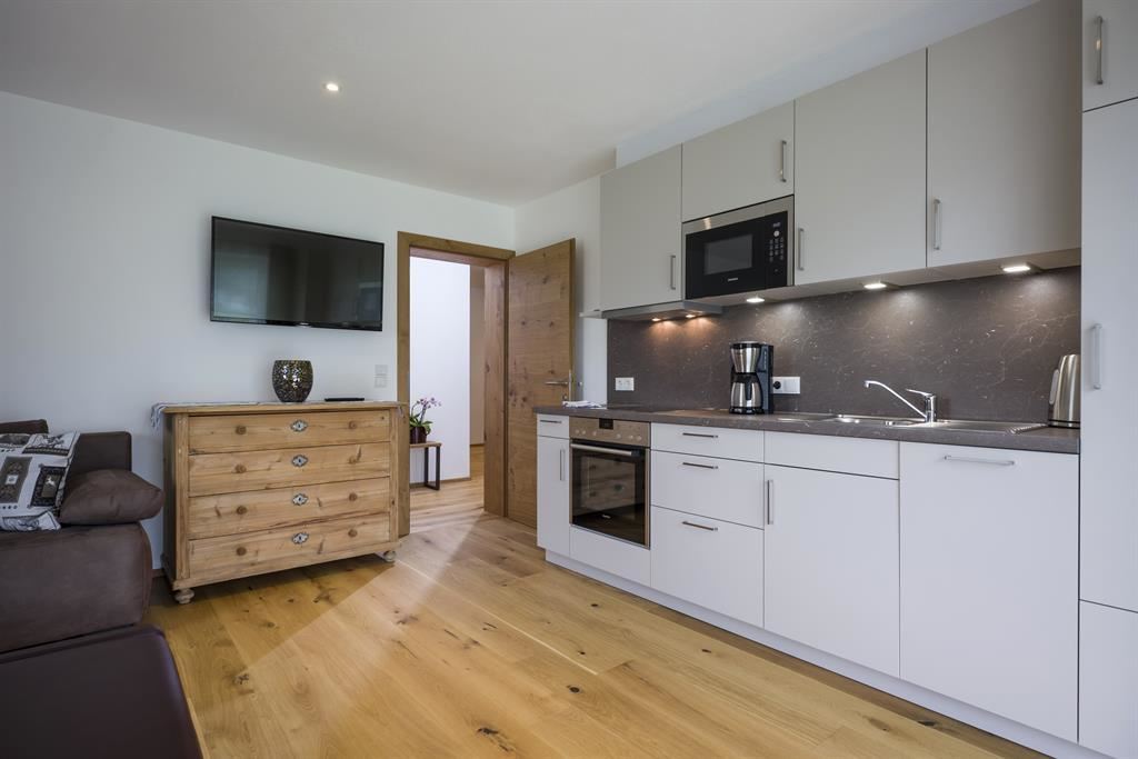Neues gemütliches Appartement mit sehr großen Garten (30m²) in sonniger Alleinlage mit rundum Blick auf die Kitzbüheler Alpen Bergwelt. 2 Schlafzimmer jeweils mit Doppelbett, 2 WC/Bad, Wohnzimmer mit voll ausgestatteter Küche, Skiraum mit Schuhtrockner, Brötchenservice