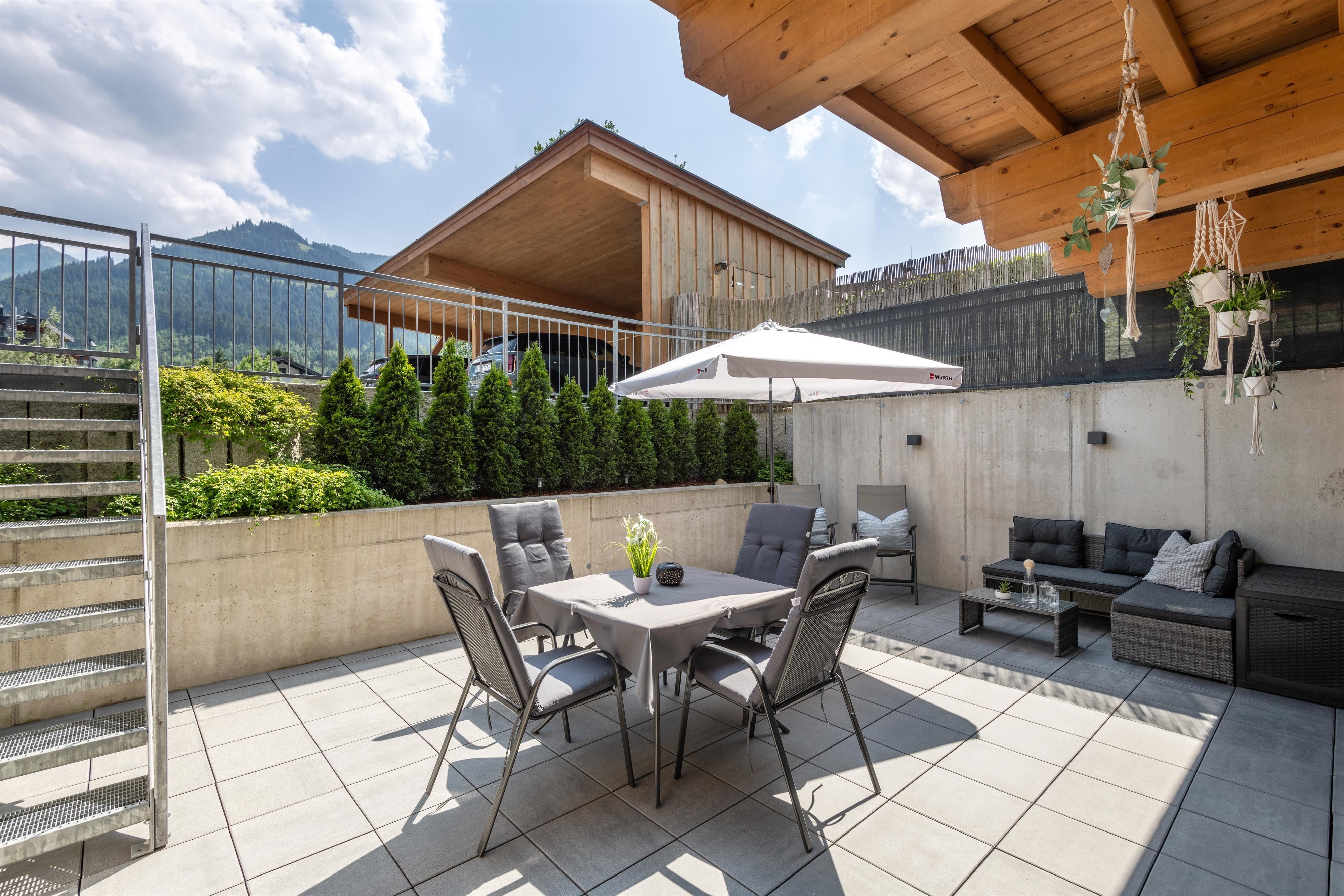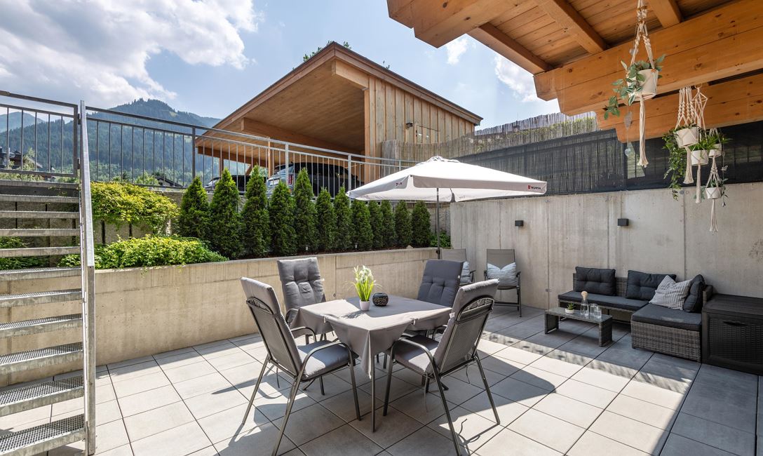 Ein eigener Ski- und Fahrradraum sowie ein überdachter Parkplatz (mit direktem Zugang zur Wohnung - über die Terrasse) sorgen für Komfort und Sicherheit. Ein Aufzug befindet sich auch im Haus.