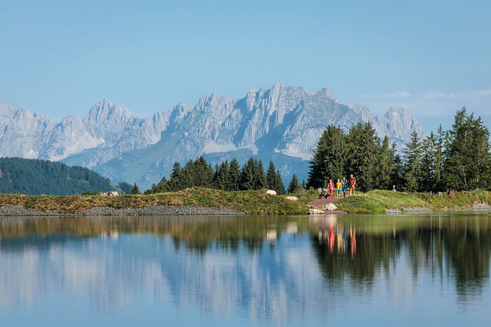 Die vierte Etappe des „WaiWi“ startet am Wildseelodersee. Nach einem stärkenden Frühstück führt der Weg über die steile Flanke zur Spitze des Wildseeloders (2.118 m), dessen Gipfelkreuz aus Pillerseestahl geschmiedet wurde. Von dort genießt man einen grenzenlosen Ausblick, ehe der Abstieg nach Fieberbrunn beginnt. Über die Wildalm geht es Richtung Tal, ein Stopp im Berggasthof Wildalpgatterl lohnt sich für regionales Essen. Weiter führt der Weg zur Mittelstation Fieberbrunn mit Erlebnisspielplatz und Timoks Wilde Welt. Nach einem Abstecher zum Lauchsee und den letzten Bauernhöfen gelangt man ins Zentrum von Fieberbrunn. Hier erinnern Skulpturen und der Fieberbrunnen an die Bergbautradition und die Namensgeschichte des Ortes. Der WaiWi endet am Dorfplatz – ein eindrucksvolles Erlebnis durch das Pillerseetal!