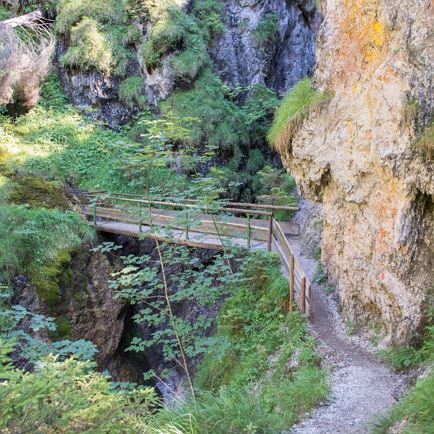 Vom Parkplatz folgt man den Wegweisern "Teufelsklamm" und wandert scharf nach Osten auf dem Forstweg aufwärts. Nach etwa 400 m biegt man links ab und folgt einem markierten Fußweg in die Klamm. Von der Brücke hat man einen schönen Blick in die Klamm, der Teufel grüßt Sie aus einer Felsnische!