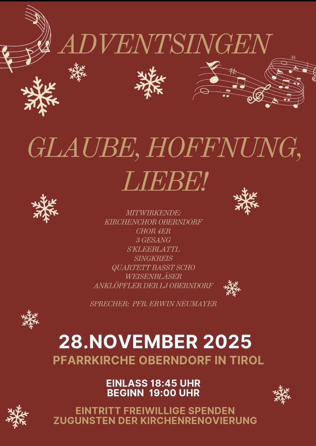 Adventsingen in der Pfarrkirche Oberndorf in Tirol