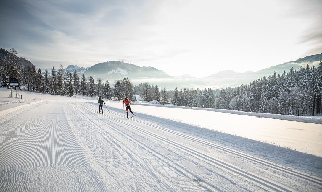 Am Loipeneinstieg Parkplatz Litzlfeldnerstraße geht es über dem Friedhof am Gasthof Neuwirt vorbei. Halten Sie sich Richtung Erpfendorf und laufen bis nach Weng. An der Wengerbrücke die Großache überqueren und der Loipe auf der anderen Seite der Ache zurück nach Kirchdorf folgen. Unter der Achenbrücke durchfahren bis zum Furtherwirt. Dann rechts halten und über die Furtherbrücke zurück nach Kirchdorf laufen.