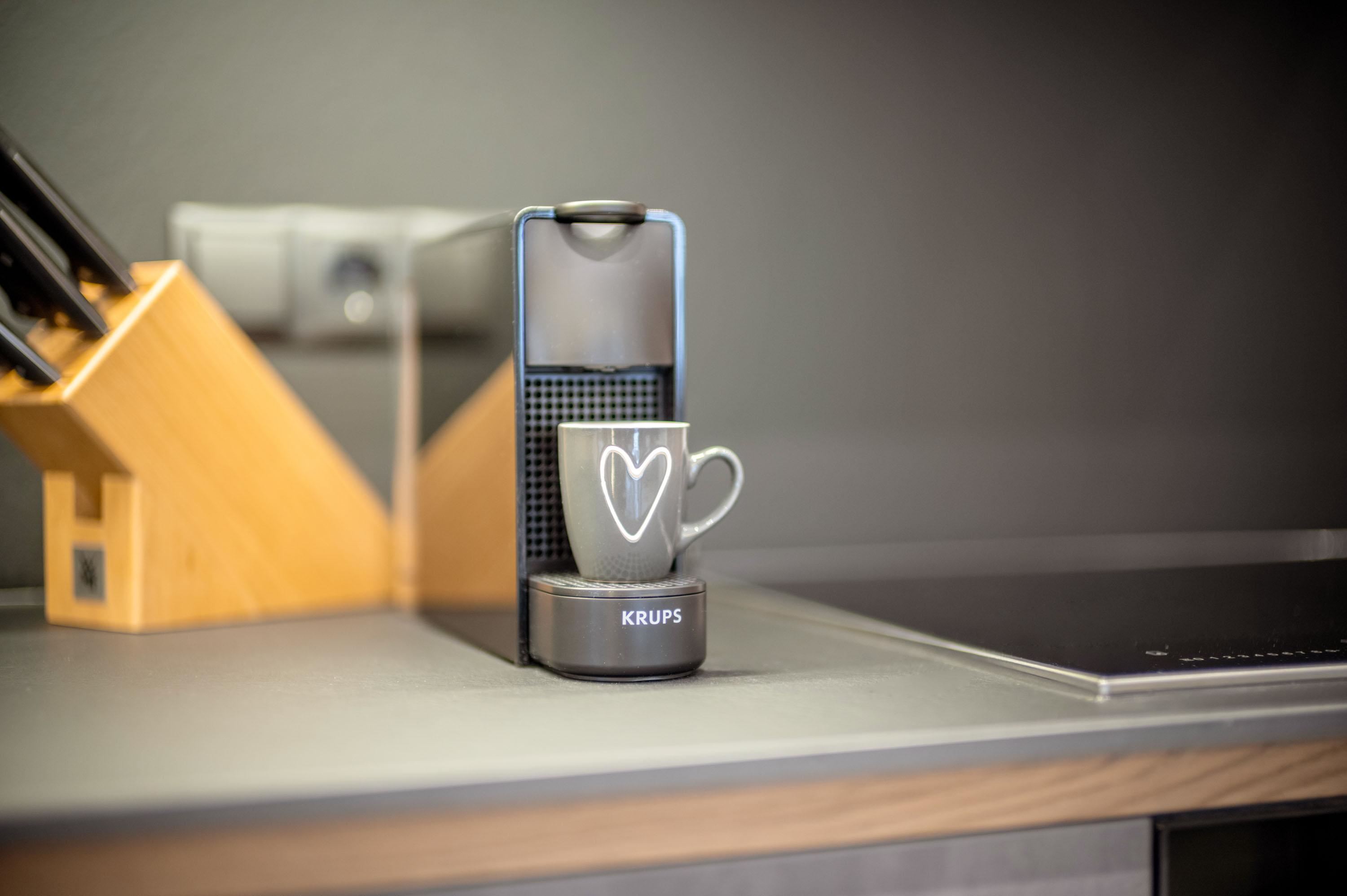 Our studio is a combined living room and bed room with double bed including a dining corner, separate bathroom with shower and toilet, kitchen with fridge, oven and dishwaher
