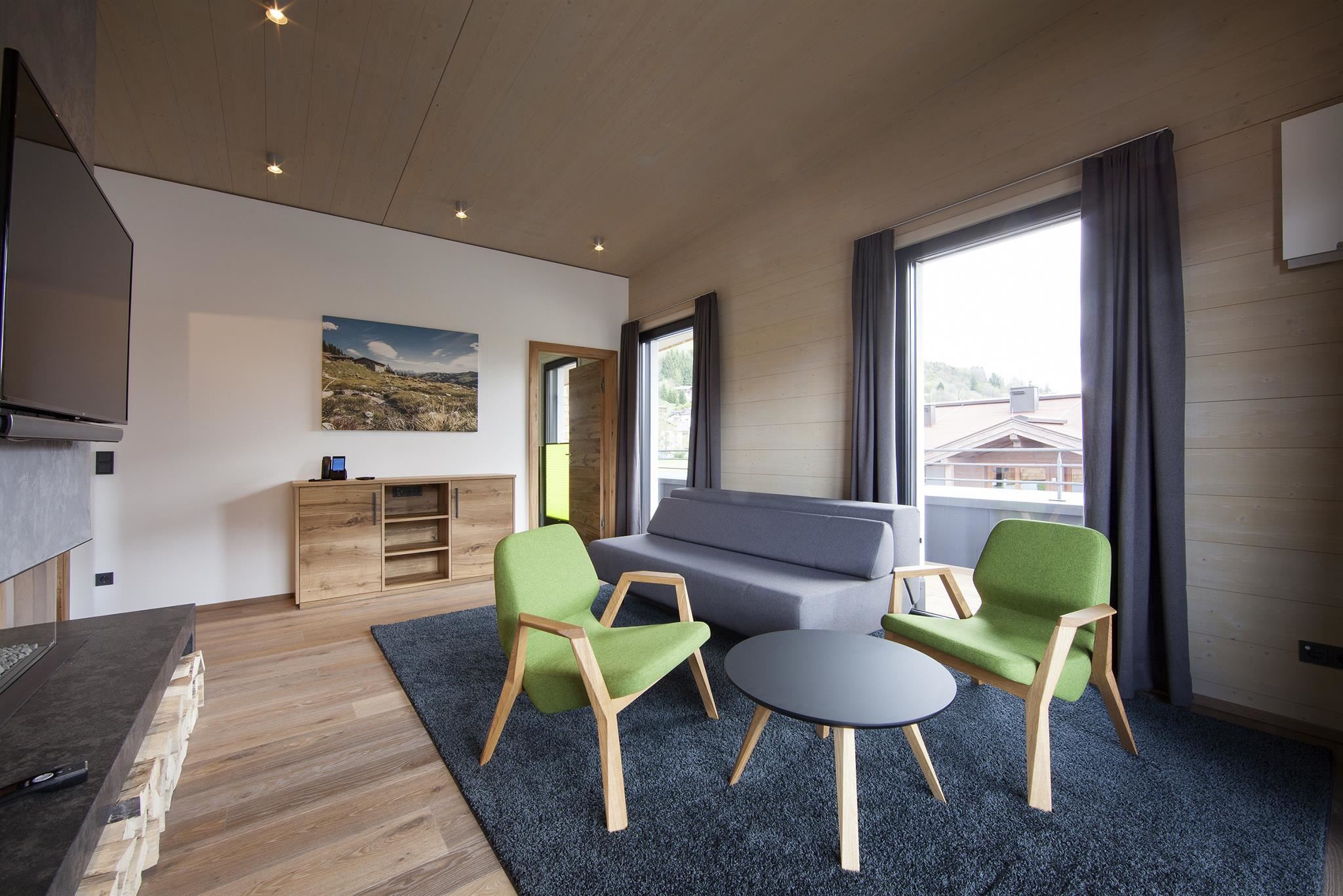 Spacious Penthouse in High-End Basic Design with natural furnishings, Alpine flair, private spa and appreciable comforts. High speed WiFi (free-of-charge), private ski and bicycle lock-up in the basement, private underground parking space according to availability. Breakfast service on request.