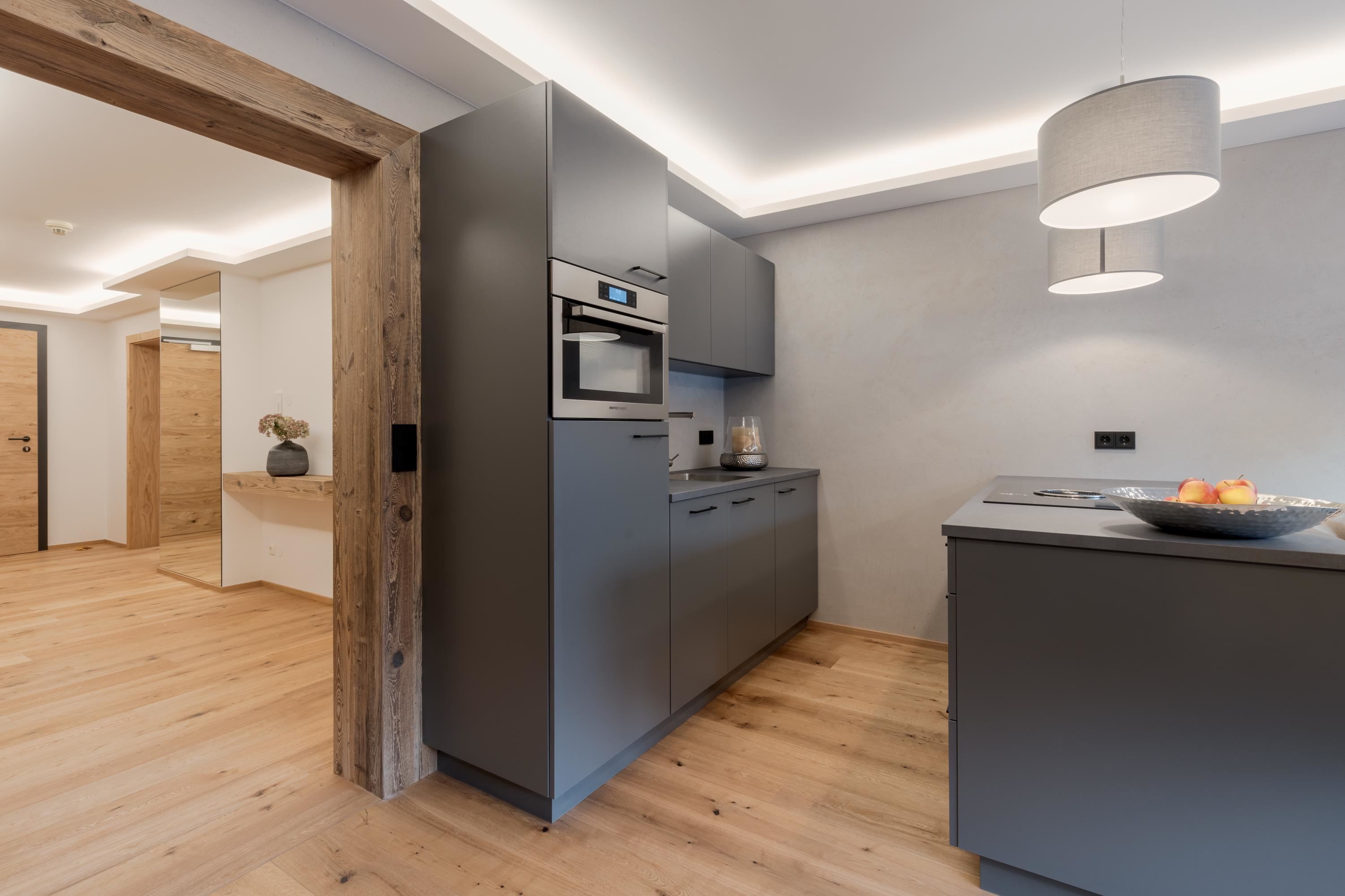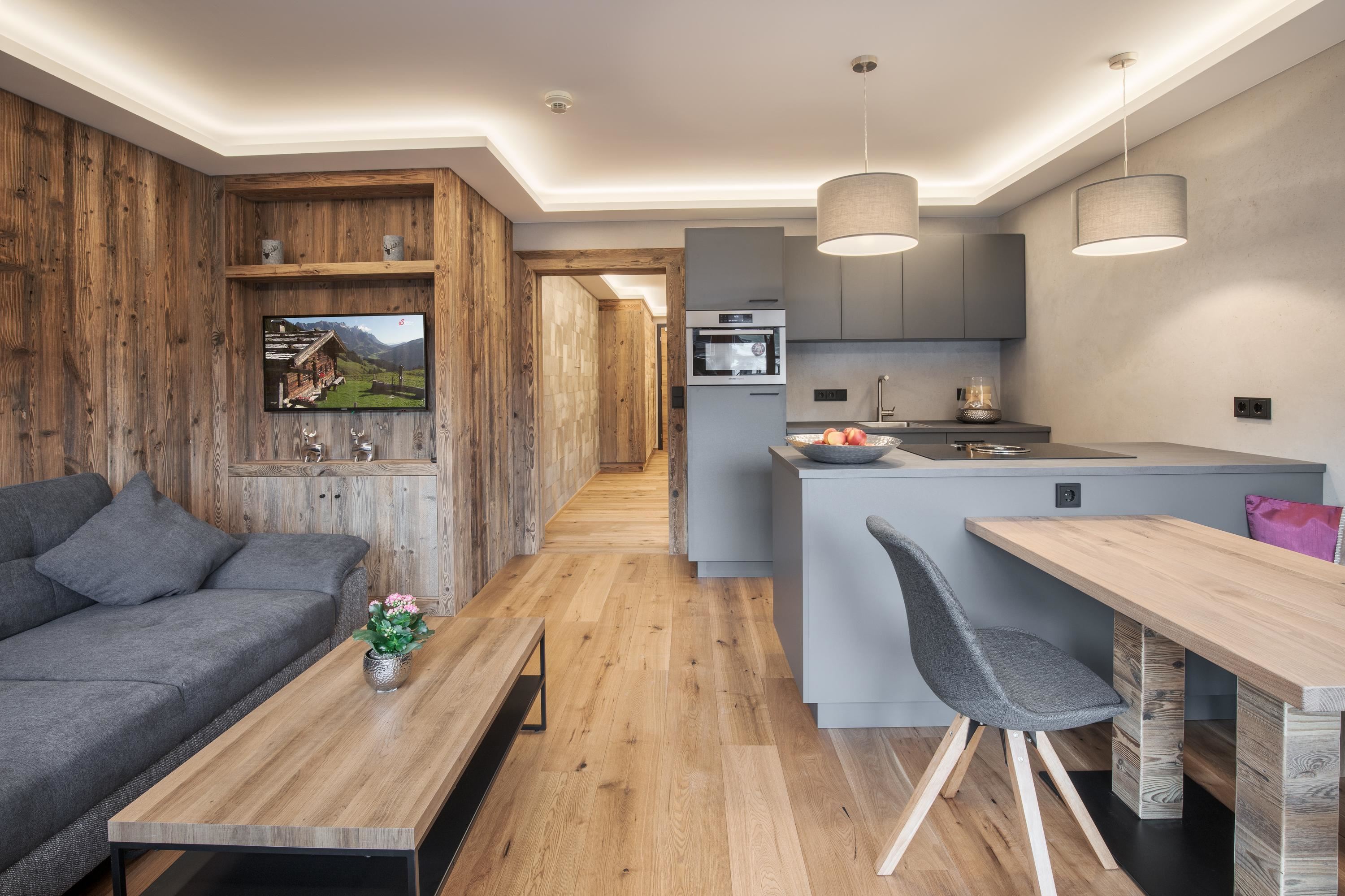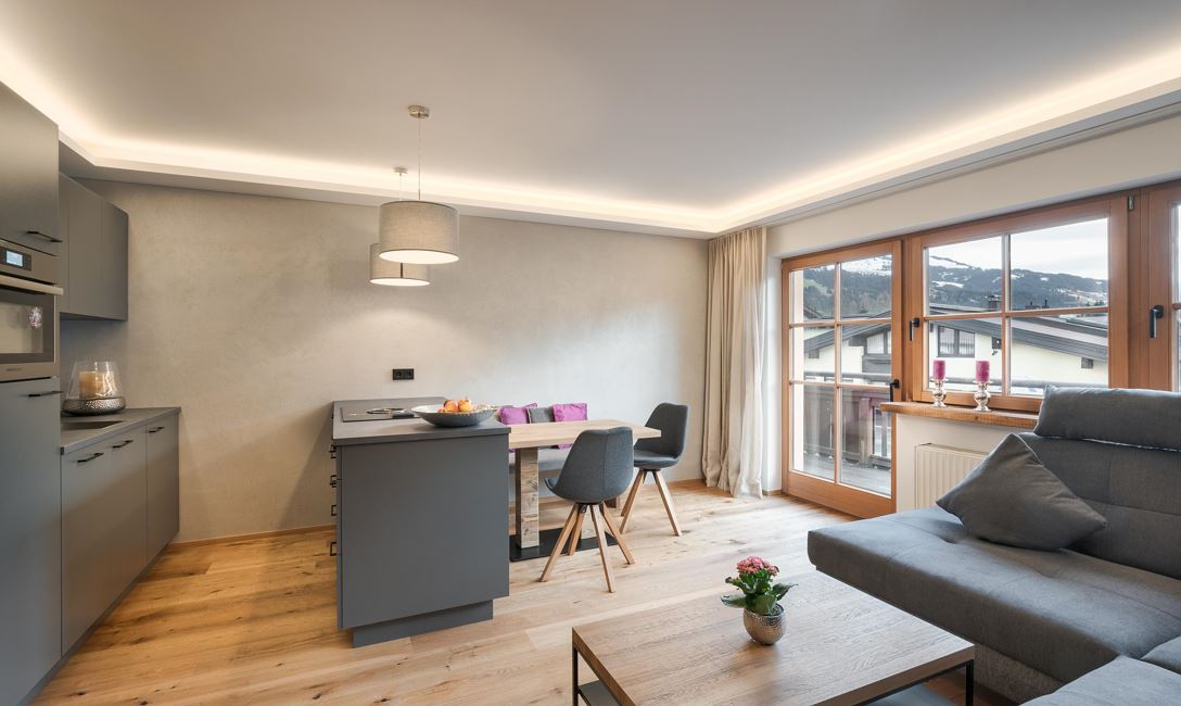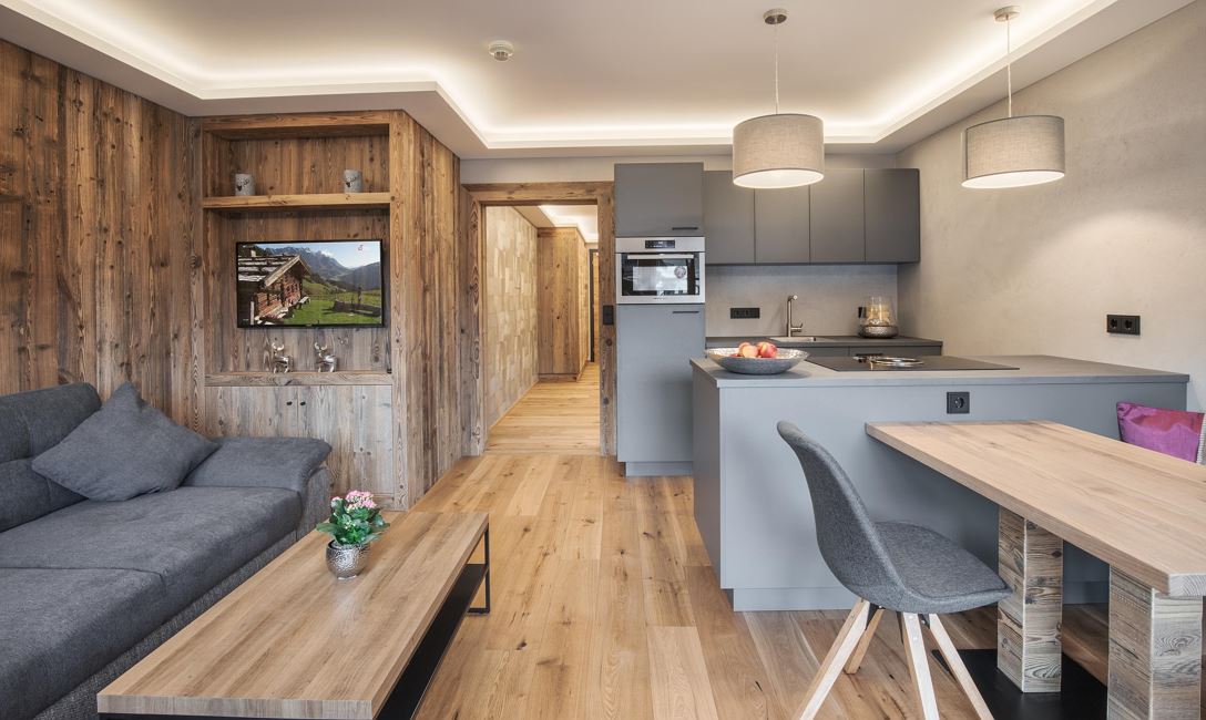 Modern, fully fitted 1 bedroom apartment on the 2nd floor with a lift. A large sofa bed in the living room for extra 2 pax. All bedding and towels included. Right in the centre with a balcony offering panoramic views of the mountains. Close to all mountain bike, hiking trails and in winter right near the fee ski bus which reaches the slopes in less then 10 minutes. Locable bike and ski storage on site, parking in nearby parking garage. Perfect all year round holiday home! We accept well behaved pets for a fee.
