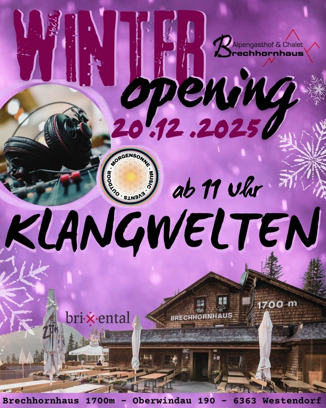 On December 20th, starting at 11:00 AM, we're celebrating the start of the season with Klangwelten from Westendorf as our headliner! Get ready for electronic sounds, good vibes, and pure winter feeling.