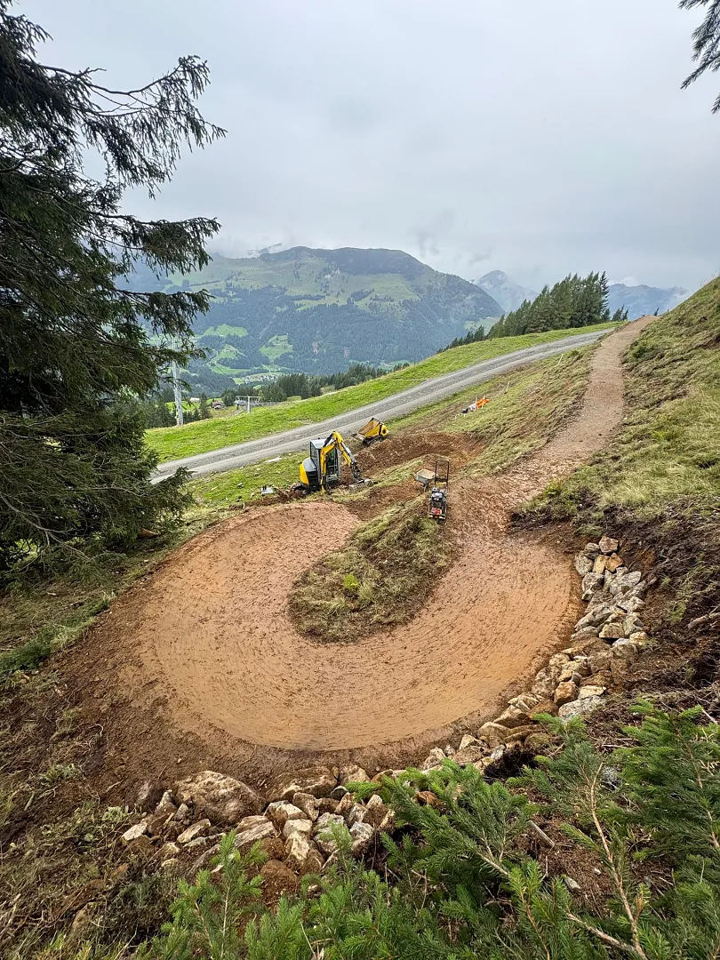 Construction officially began on 17th July 2025, with the opening planned for 13th June 2026. Around 10 kilometers of newly built trail sections, combined with existing connections, will make the Kirchberg Trail the longest flow trail in Tyrol. This isn’t a showcase project – it’s a sustainable expansion of the bike offering in Brixental Valley, built with a clear concept and real added value for both guests and the region.