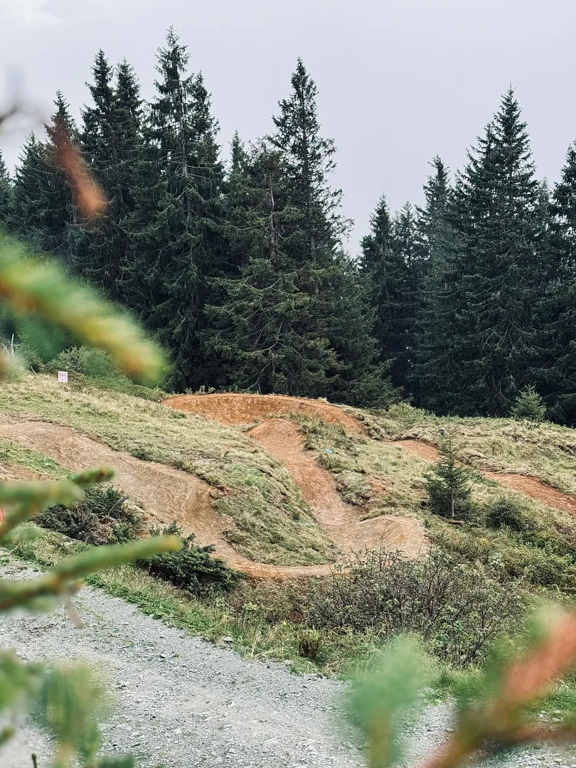 The Kirchberg Trail starts exactly where it should: at the top. From the Fleckalmbahn mountain station, the trail flows downhill section by section – no interruptions, no forced stops. The rhythm stays consistent from start to finish. Natural terrain alternates with built features, berms roll into waves, side hits are there if you want them – but never mandatory. The trail remains predictable and easy to control for beginners, while experienced riders stay engaged thanks to its length, flow and well-paced layout.