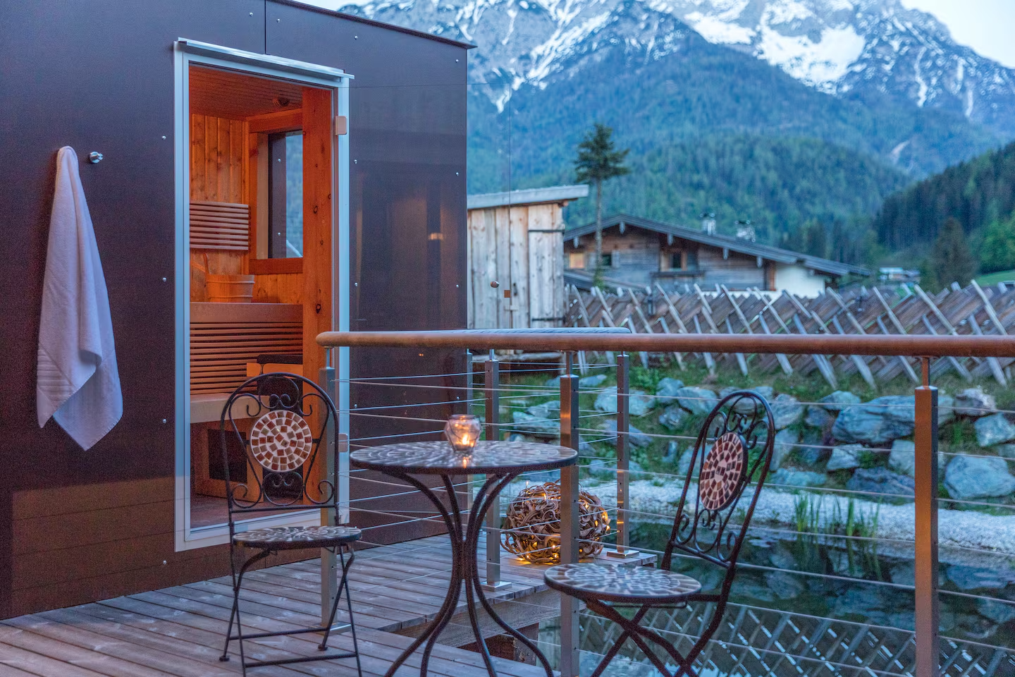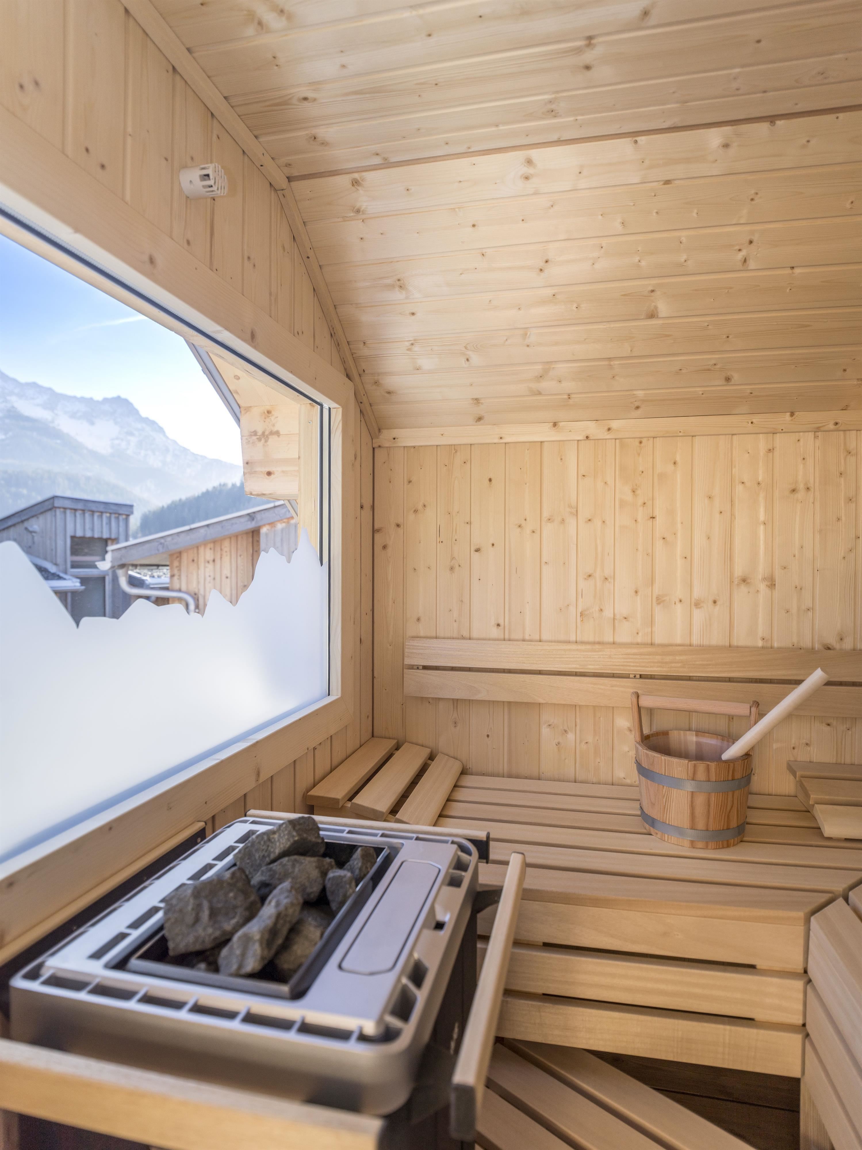 - Private outdoor sauna with mountain pine infusion