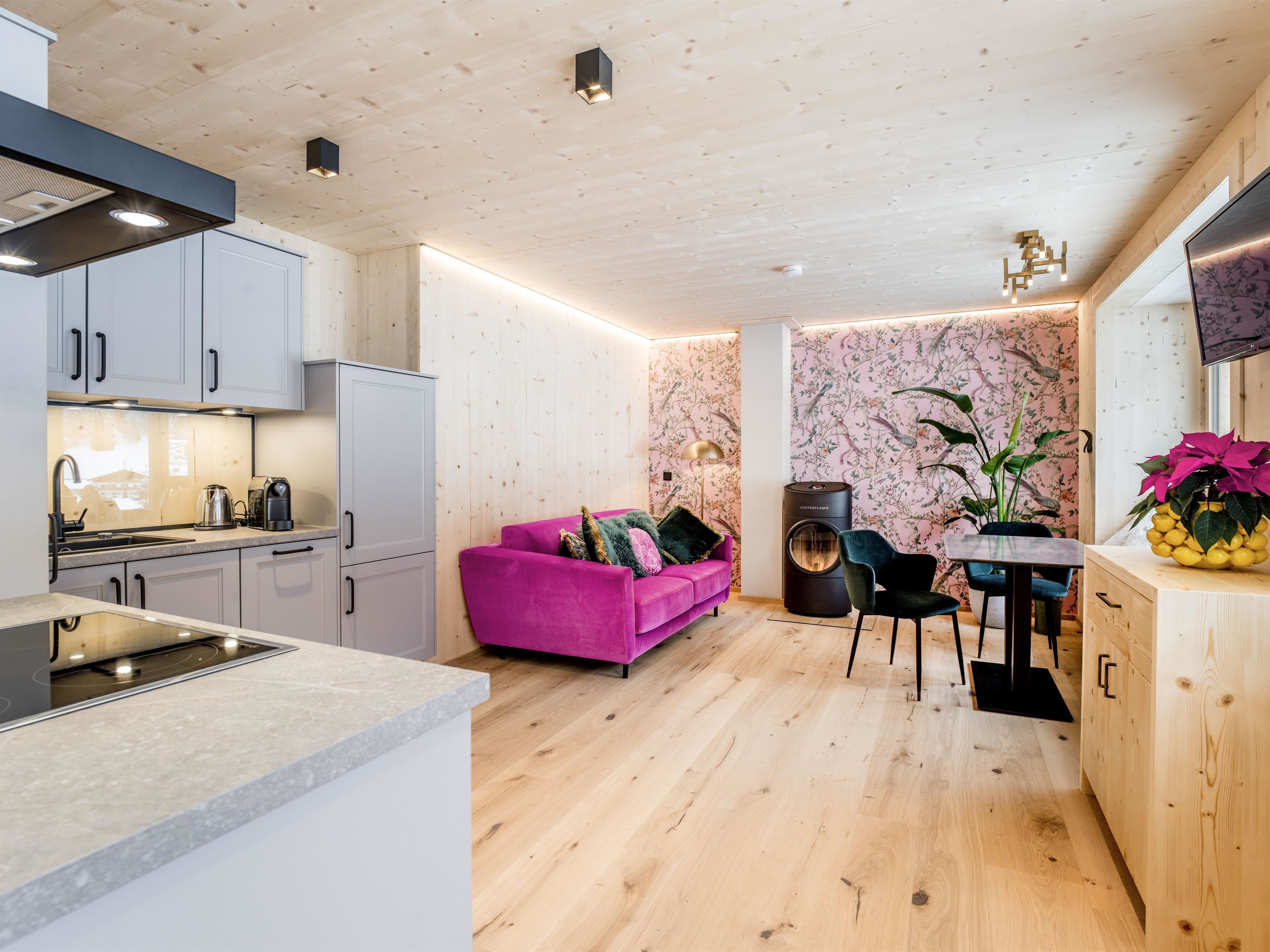 Our chalets BERG.HEIMAT, BERG.KUNST, and BERG.PIONIERE offer:- Fully equipped kitchen