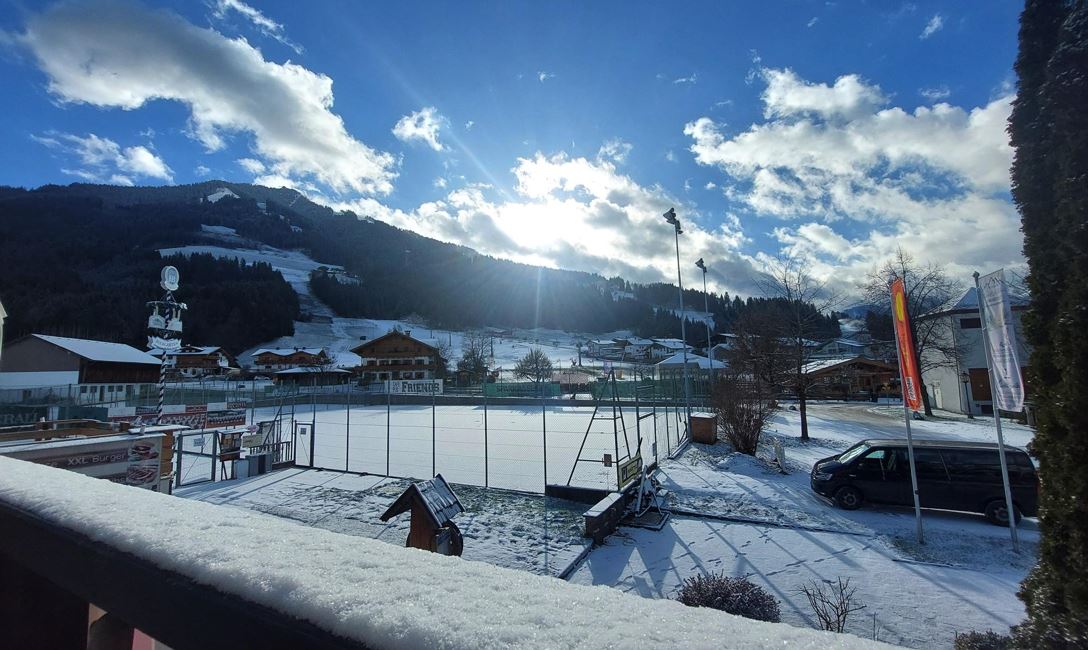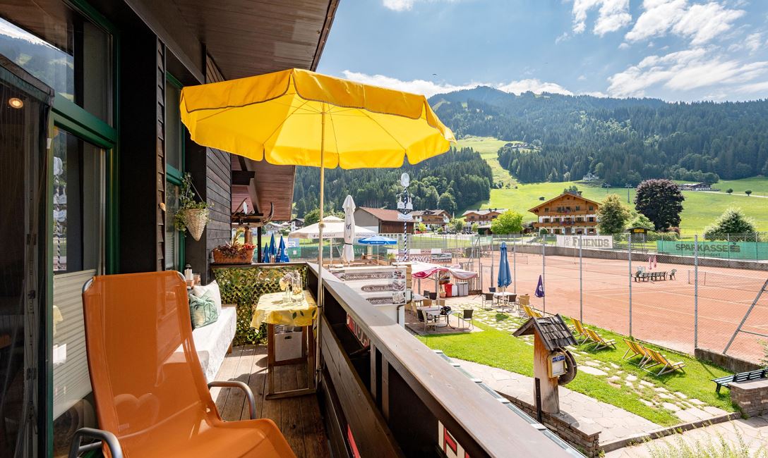 Direct aan de Ski-Oefenweide met toegang tot het skigebied "Wilder Kaiser Brixental", met uitzicht op de tennisbaan.