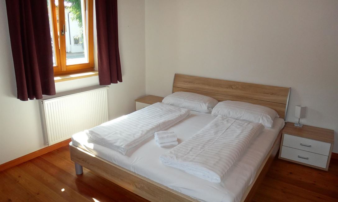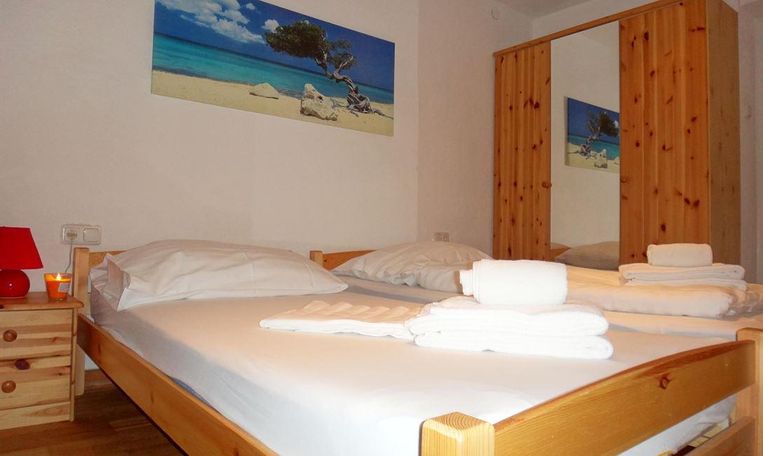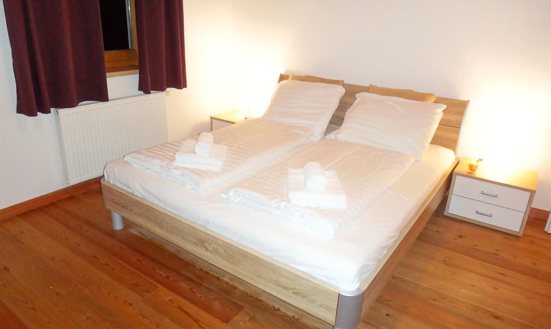 • 2 slaapkamers – 1 x slaapkamer met tweepersoonsbed + 1 x slaapkamer met 2 eenpersoonsbedden
