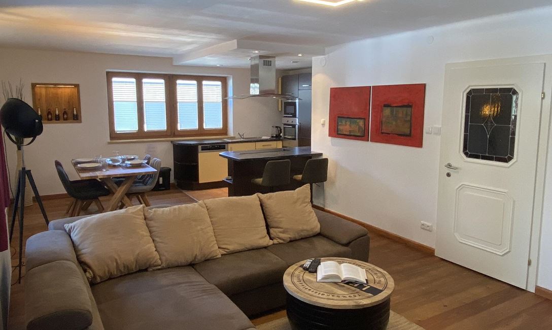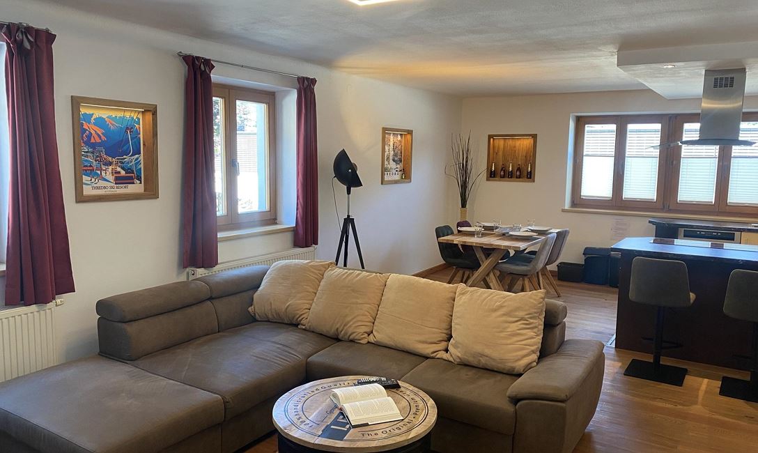 • ruime woonkamer met grote bank, flatscreen TV (6 Austrian Channels only) + DVD