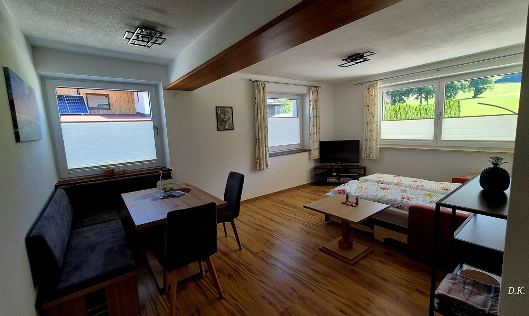 Ons "Appartement Panorama" van iets meer dan 110 m² is ideaal voor maximaal 10 personen. Hier kunnen 6 volwassenen en 4 kinderen een ontspannen vakantie beleven. Op het terras aan de zuidoostzijde zie je de Choralpe en kun je in de zon van je ontbijt genieten. Daarnaast is er een extra balkon dat toegankelijk is vanuit de 3 slaapkamers.