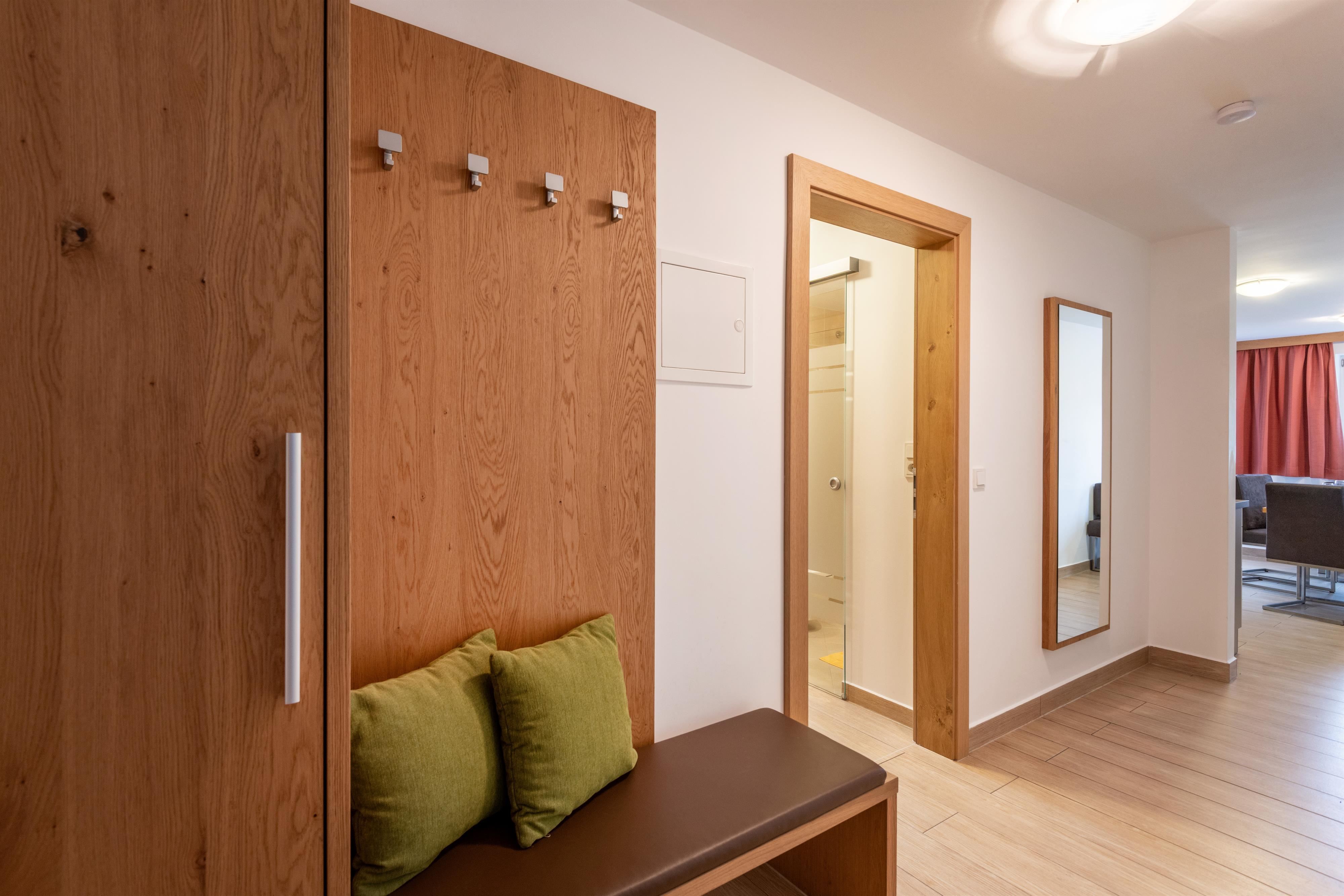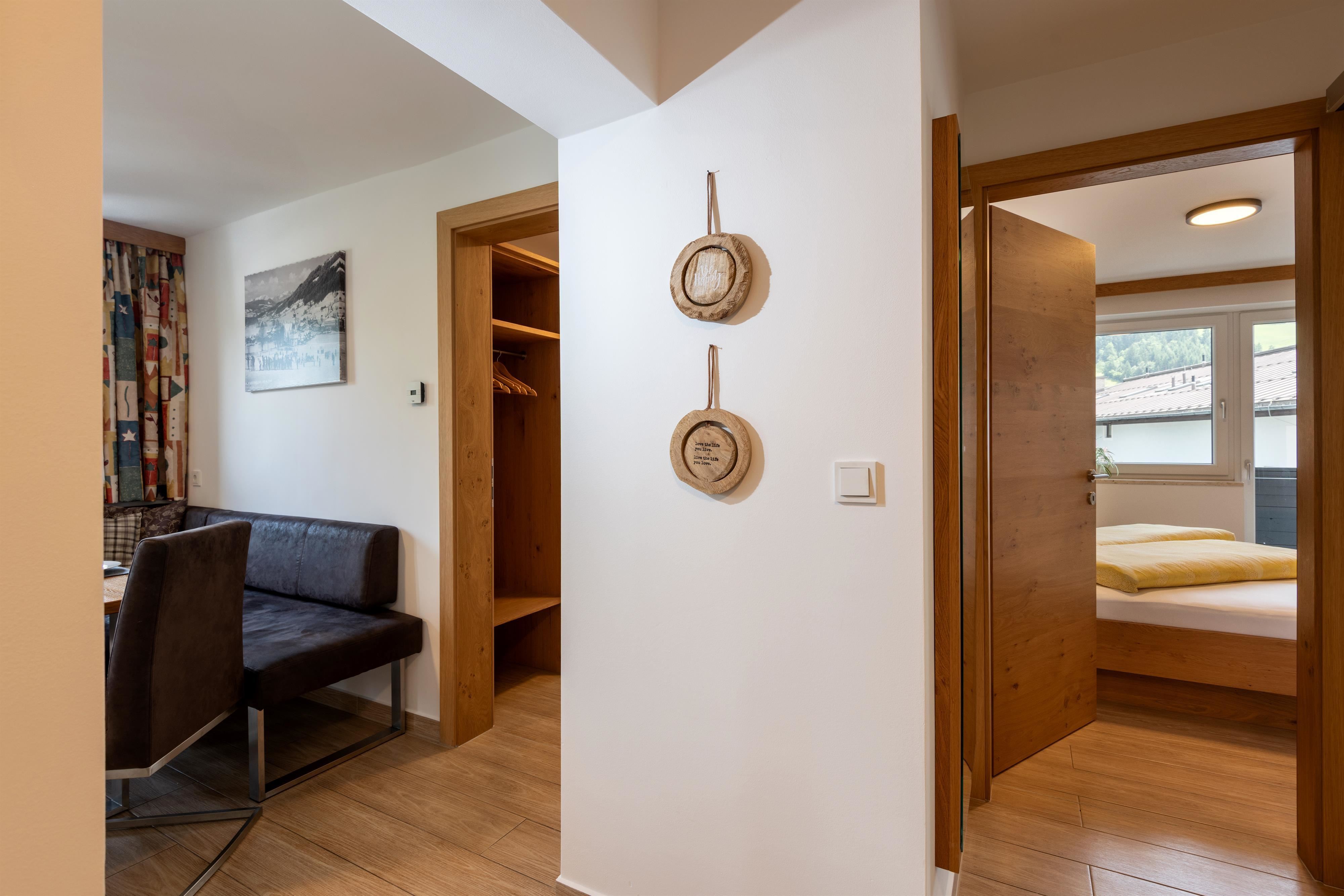 Appartement in Tiroolse stijl, ca. 70 m², 1 slaapkamer, woonkamer met bank, woonkeuken, eethoek, grote badkamer met douche en bad, separate wc, compleet ingerichte keuken (2e slaapkamer met bad/wc, eigen entree).