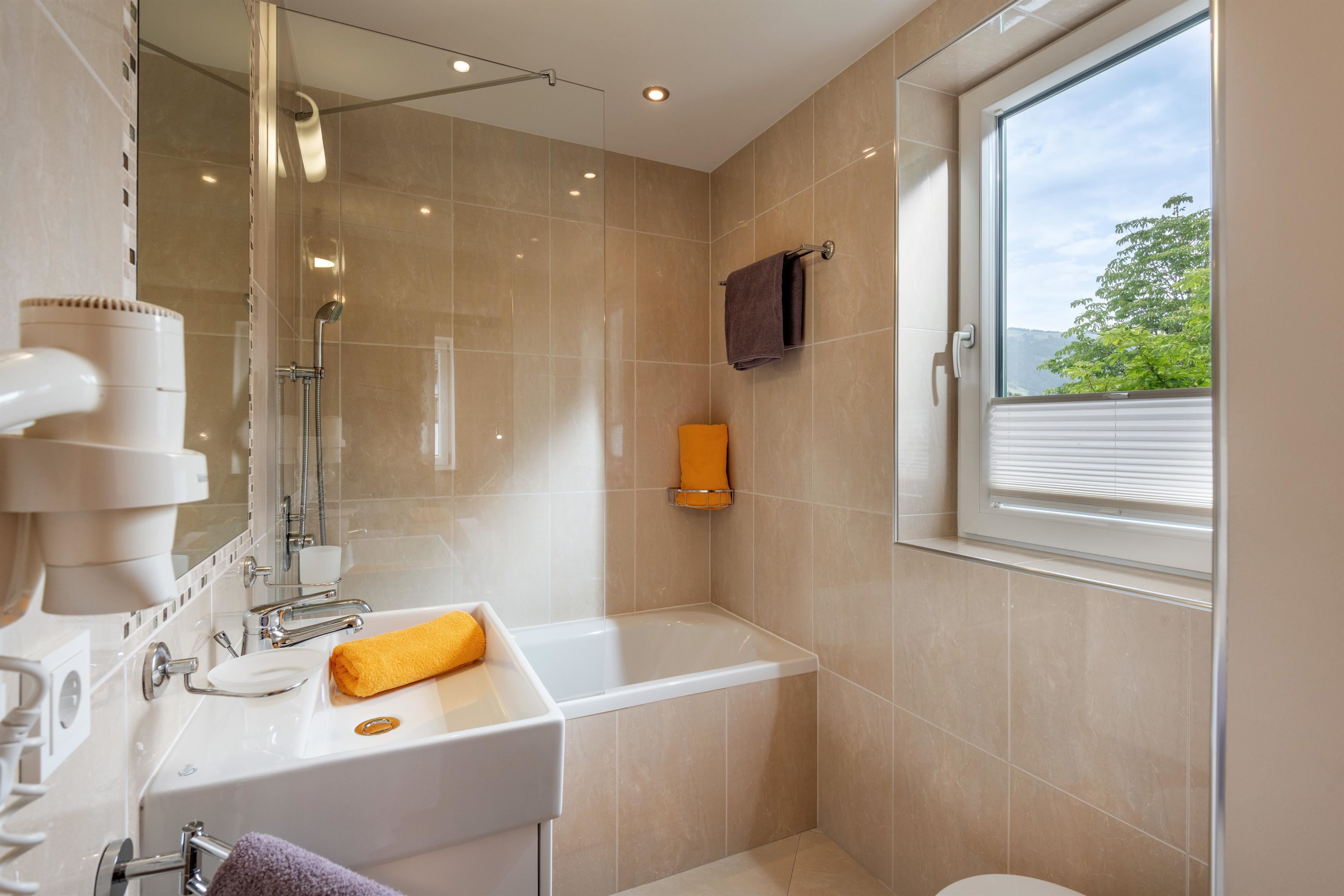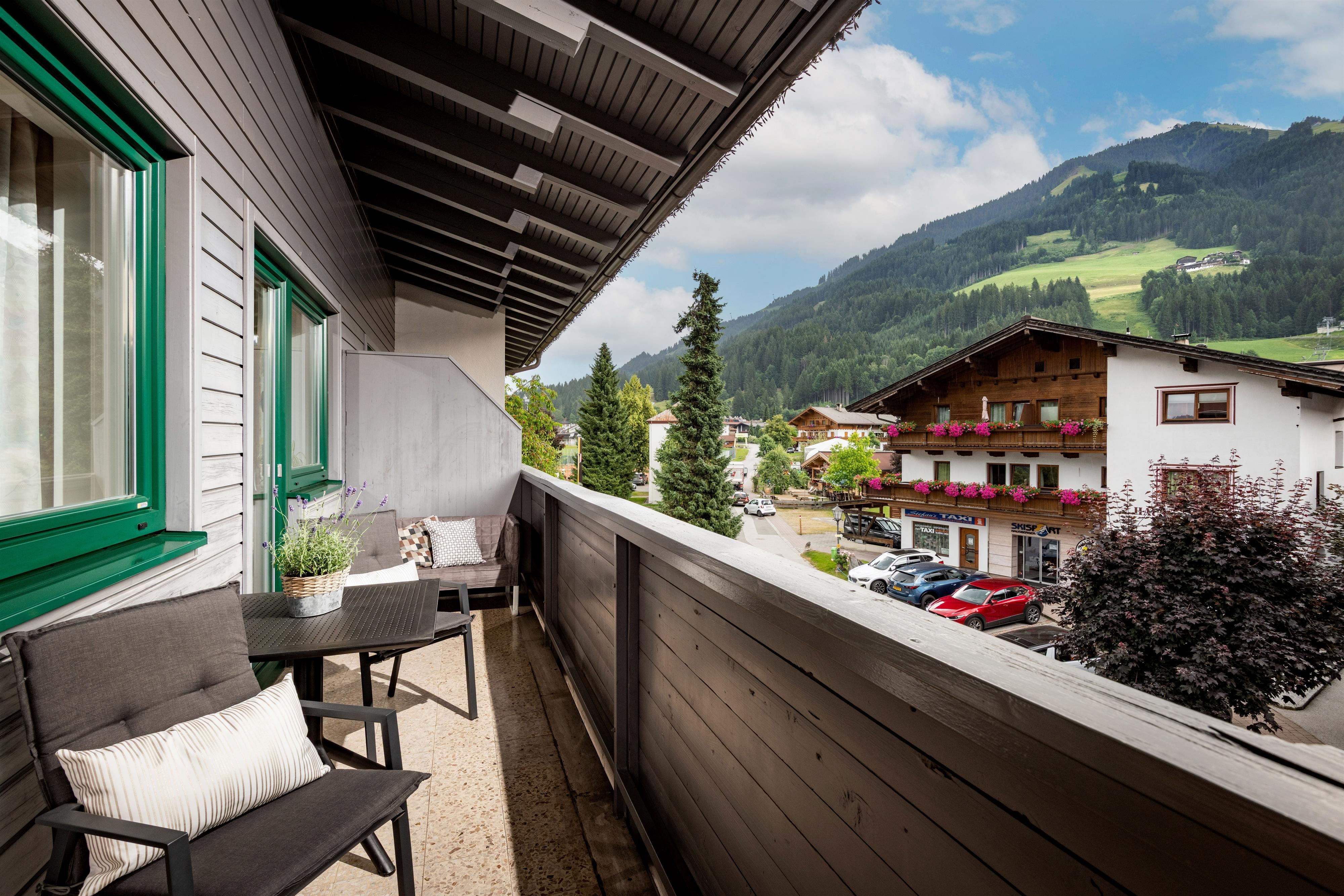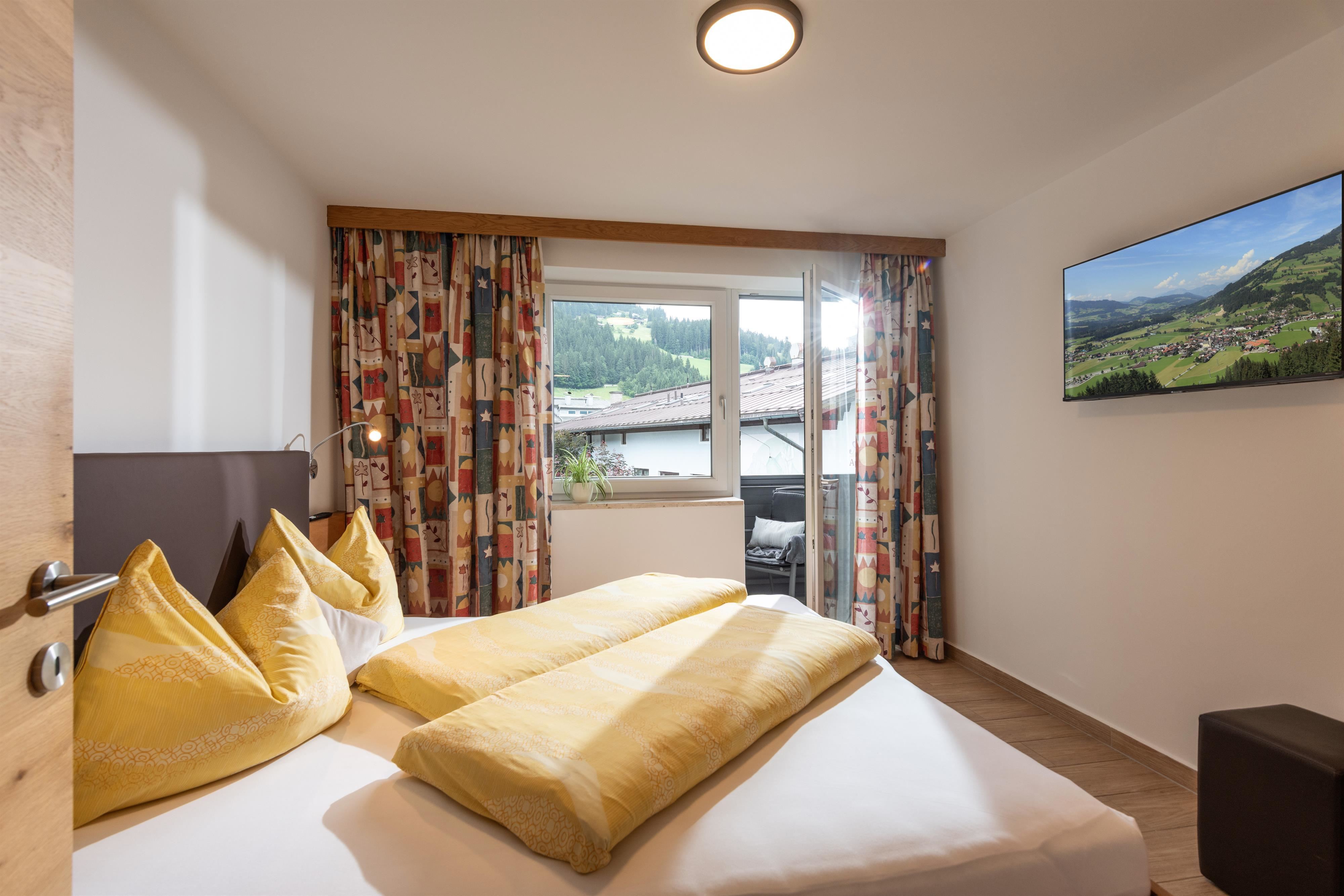 Compleet gerenoveerd appartement, ca. 70 m², 2 slaapkamers, woonkamer met bank, compleet ingerichte keuken, eethoek, balkon met uitzicht op de Kitzbüheler Alpen, kapstok, 1 badkamer met douche/wc en 1 badkamer met bad/wc.