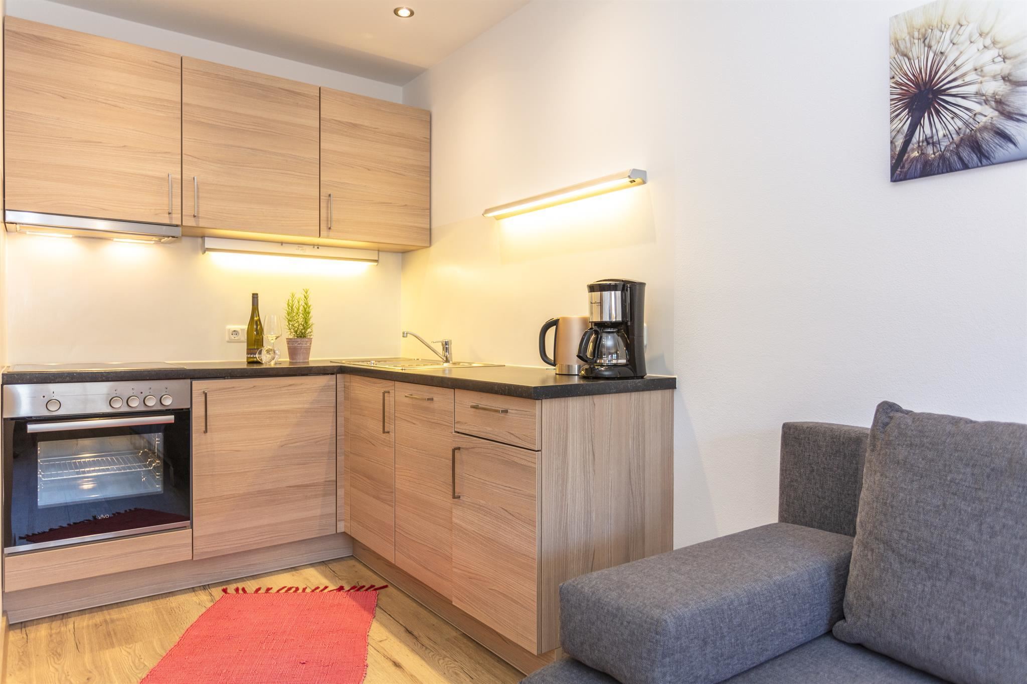 appartement voor 4 personen, ca. 45 m², 1 twee-persoonskamer, 1 woon-slaapkamer, kooknis met eethoek, douche/wc, hal, balkon, w-lan internet.