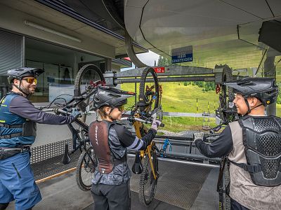 Mountainbikes, e-bikes enz. worden veilig vervoerd op de genoemde kabelbanen - mits ze schoon en rijklaar zijn. Op sommige kabelbanen moet de accu van de e-bike worden verwijderd vanwege het gewicht. Het spoorwegpersoneel helpt graag met in- en uitladen - vooral bij stoeltjesliften. En het beste van alles: fietsvervoer is zowel bergop als bergaf geldig.