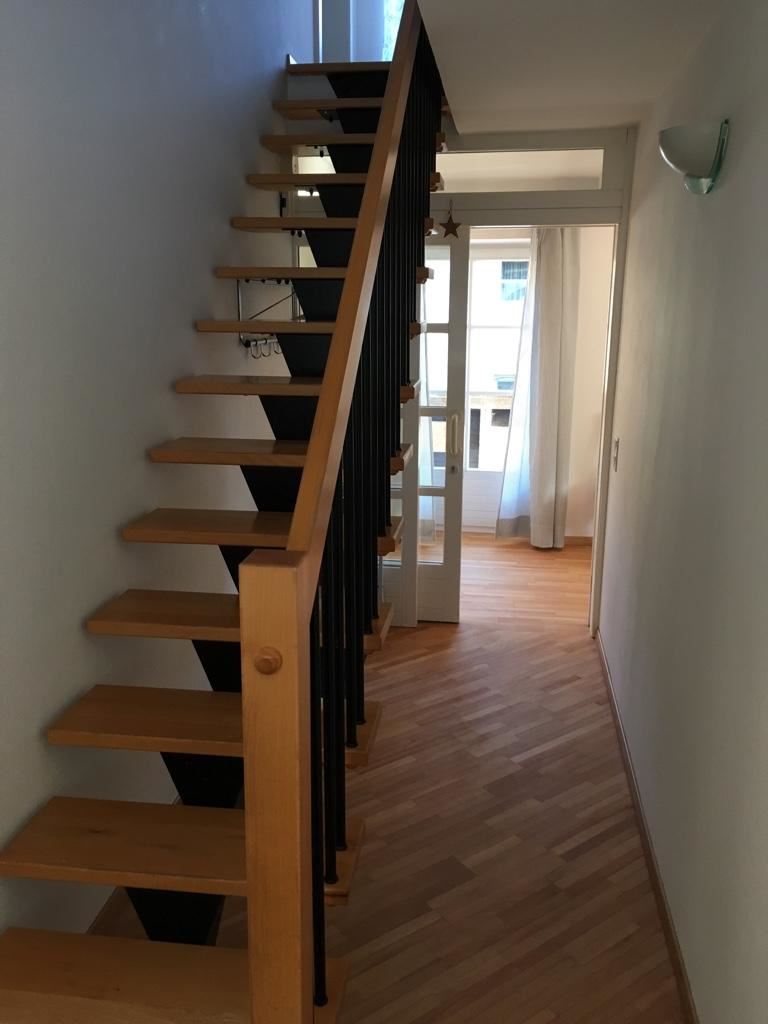 Ruim, comfortabel vakantie-appartement op 2 verdiepingen, 120 m², compleet ingerichte keuken incl. afwasmachine, eetkamer, woonkamer met kachel, tv, internet (wifi), gasten-wc, badkamer met douche, bad, dubbele wastafel en wc.