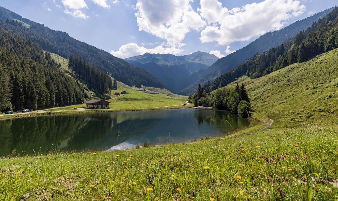 Voor de deur ligt een van de mooiste wandel- en skitochtengebieden van Tirol met fantastische bergtoppen. Rondom de hut ligt ons alpenweidegebied met kleinere en grotere beekjes en het stuwmeer ... zeer geliefd bij jong en oud. Onze kleine kalfjes grazen bij de hut en de koeien bij het nabijgelegen stuwmeer.