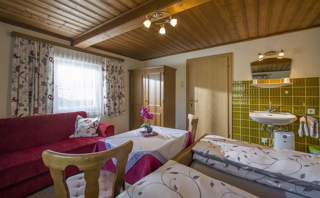 Gezellige twee- of drie-persoonskamer met stromend water, douche en wc op de etage.