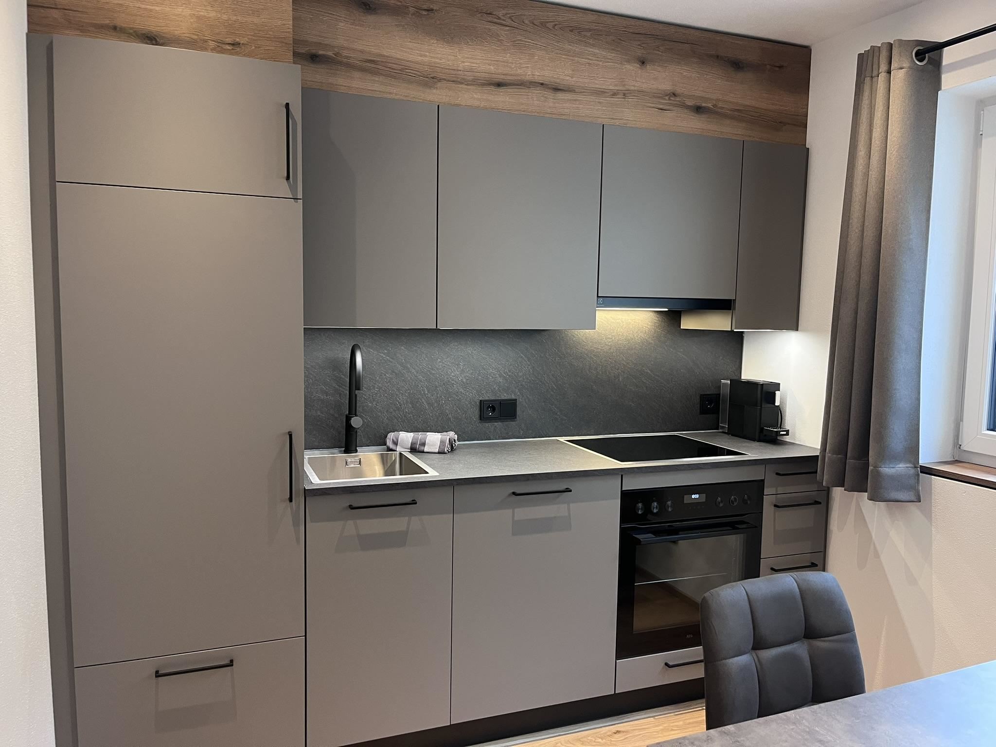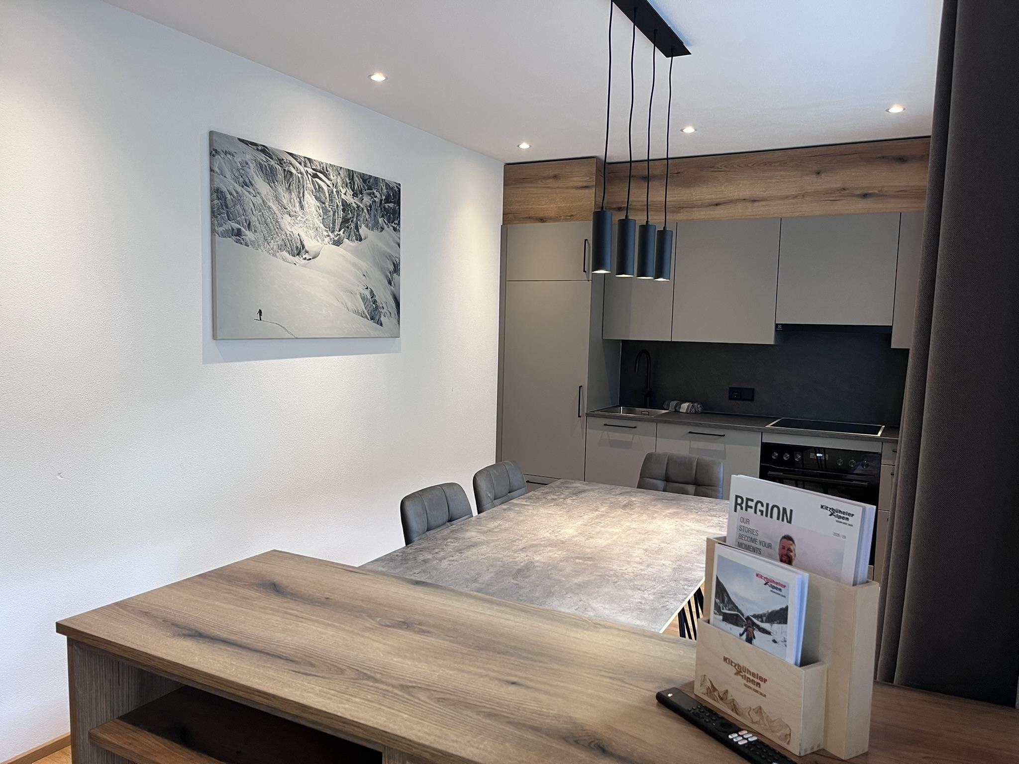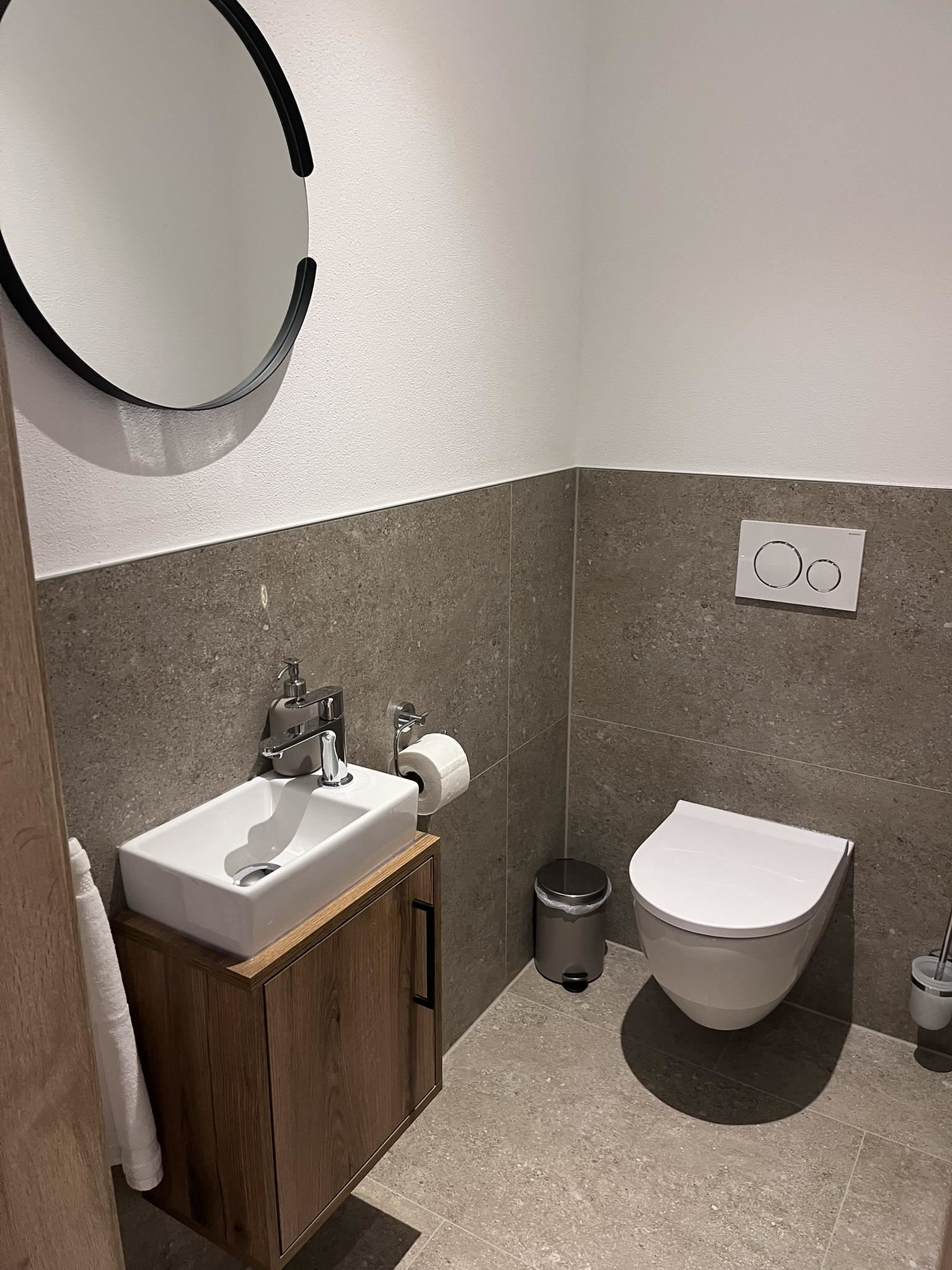 Ferienwohnung (53 m²) met open keuken en woonkamer, twee slaapkamers, moderne badkamer met handdoekradiator en apart toilet. Eigen ingang, terras en aparte berging voor fietsen en ski's met droger voor 5 paar schoenen en E-bike oplaadpunt.