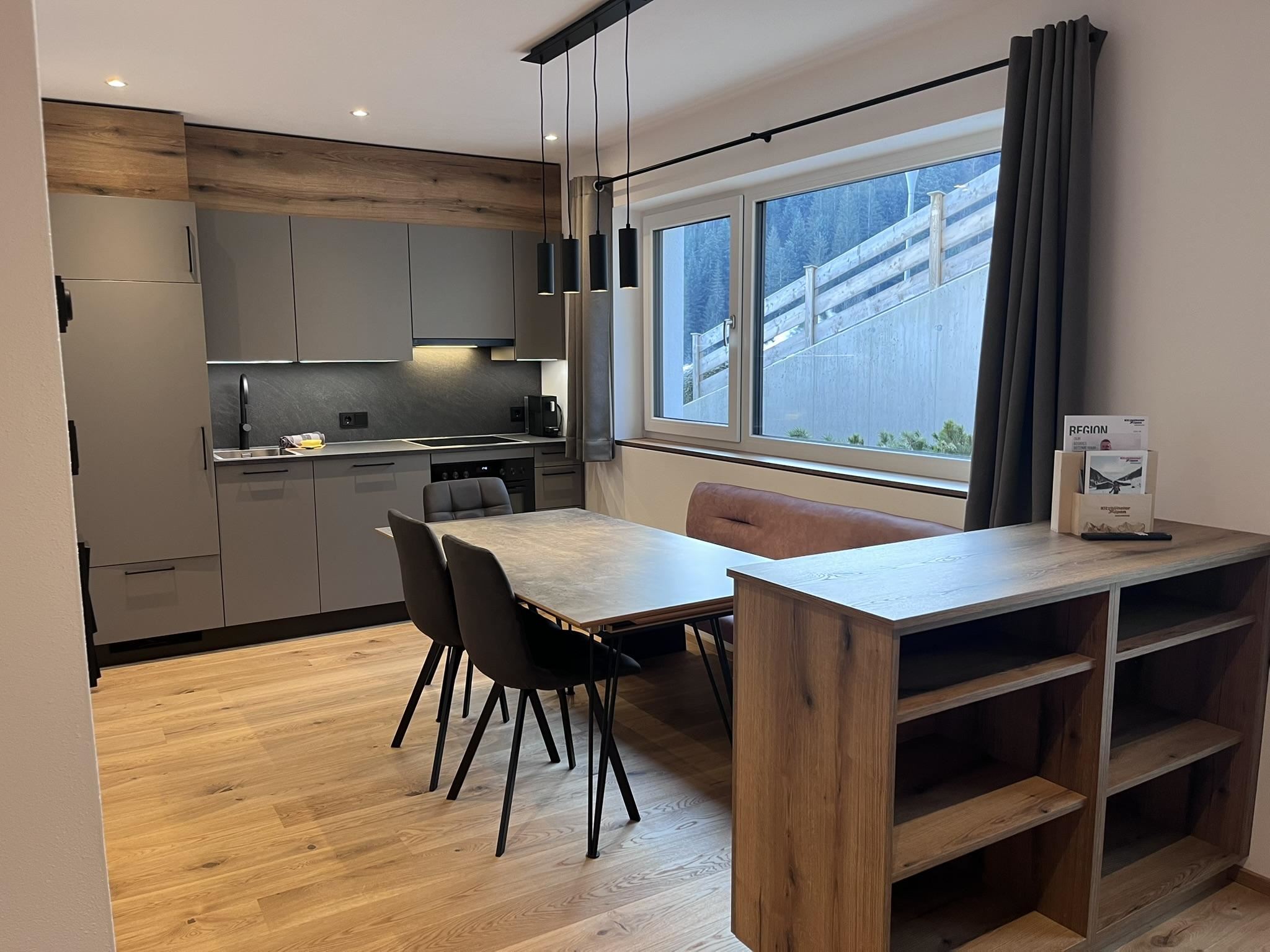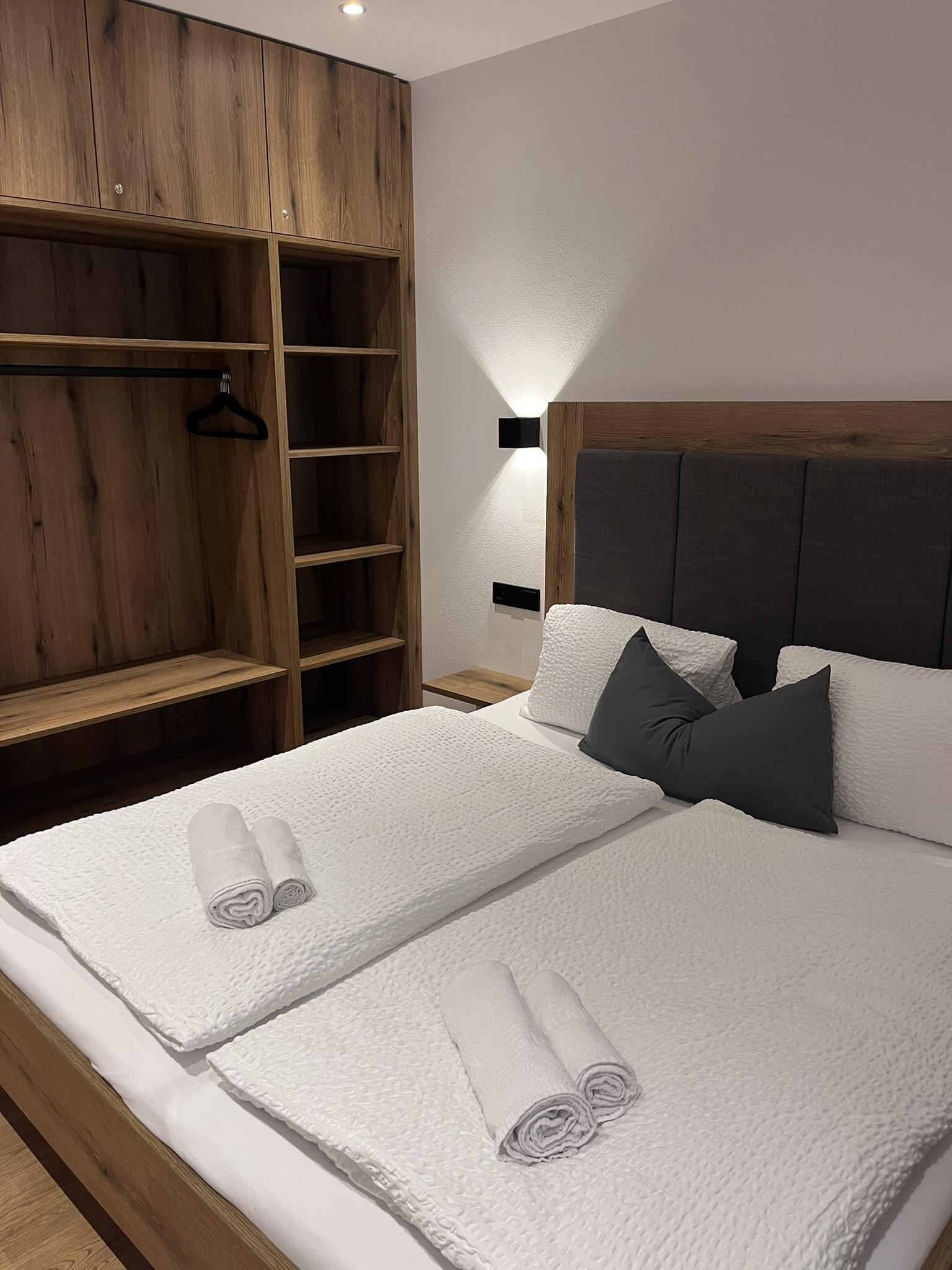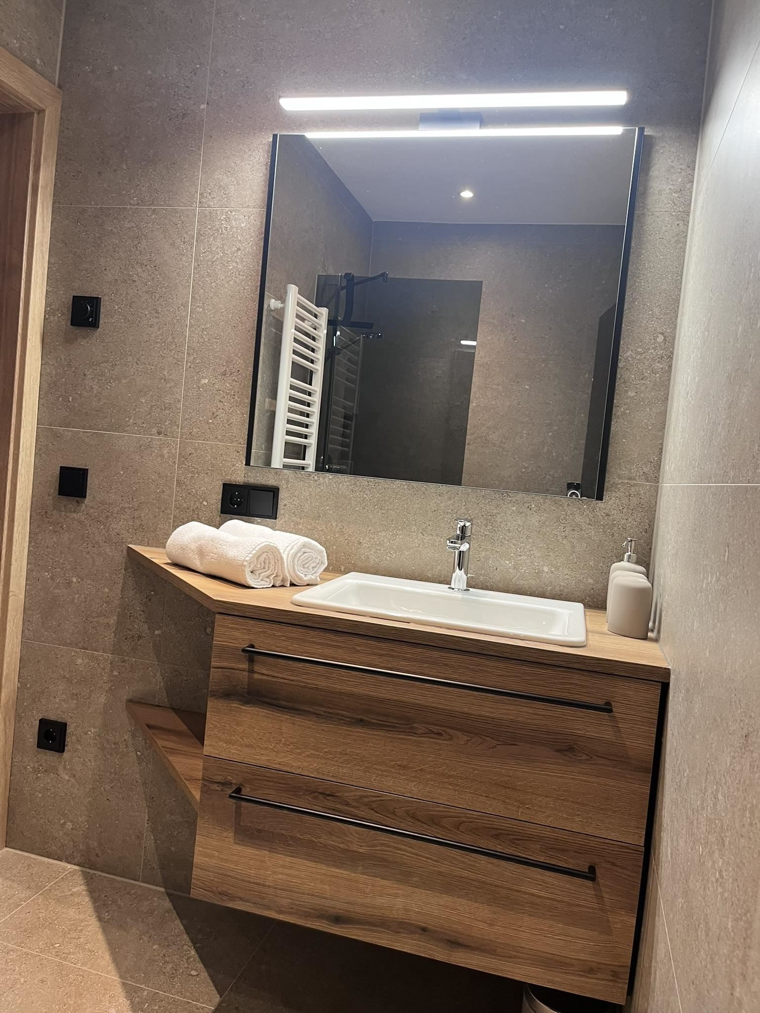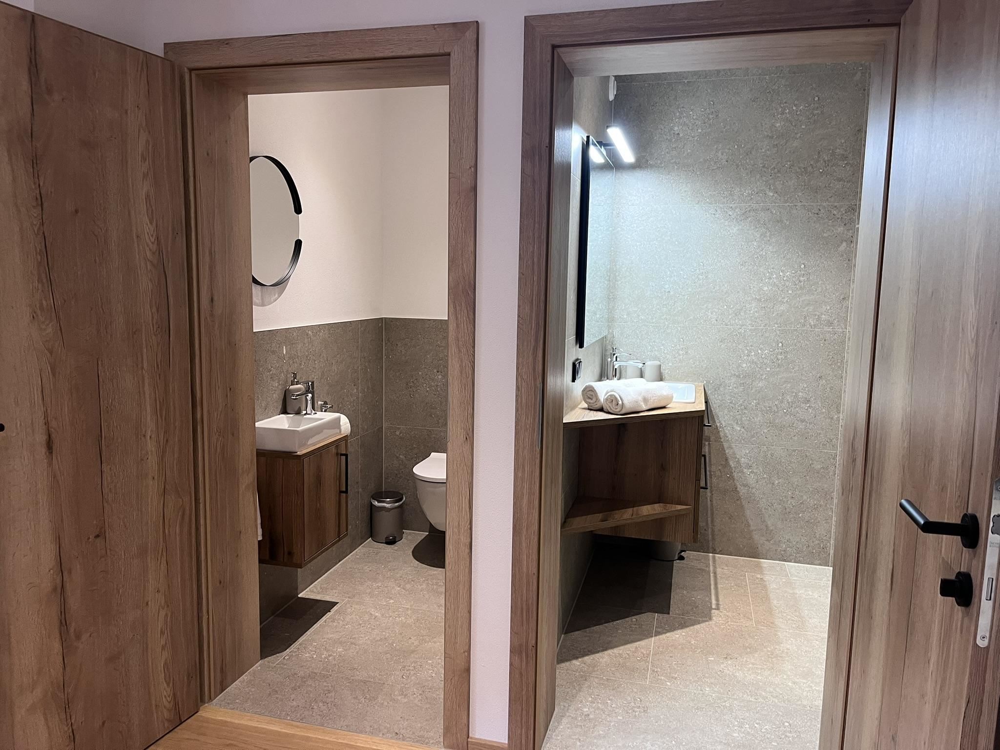 Ferienwohnung (53 m²) met open keuken en woonkamer, twee slaapkamers, moderne badkamer met handdoekradiator en apart toilet. Eigen ingang, terras en aparte berging voor fietsen en ski's met droger voor 5 paar schoenen en E-bike oplaadpunt.