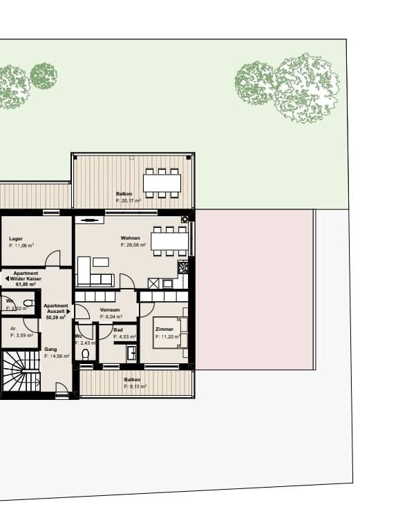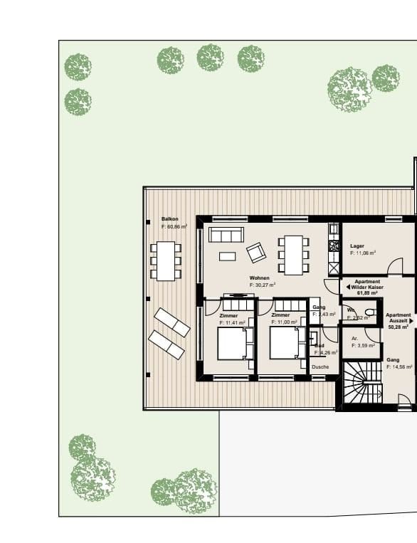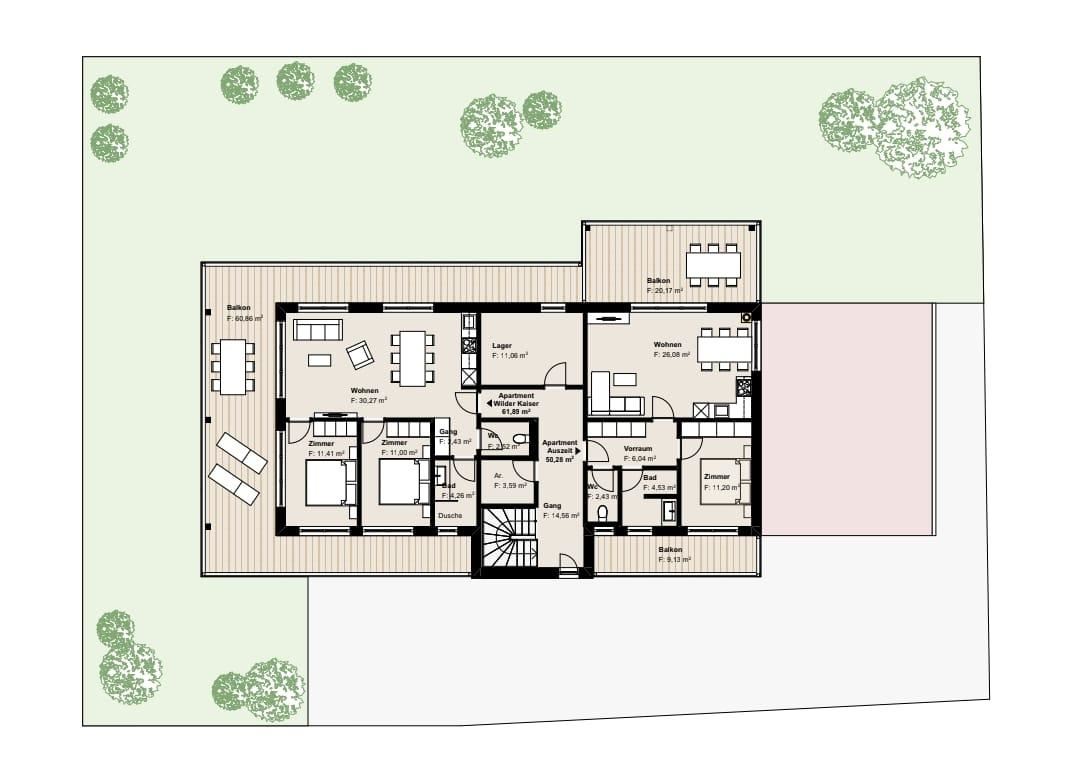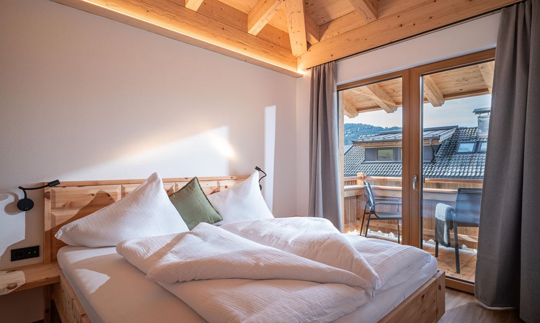 Het appartement Auszeit beschikt over 1 slaapkamer met een tweepersoonsbed en een uitschuifbare slaapbank voor 2 personen in de woonkamer. Daarnaast heeft u een badkamer met douche en een aparte WC tot uw beschikking.