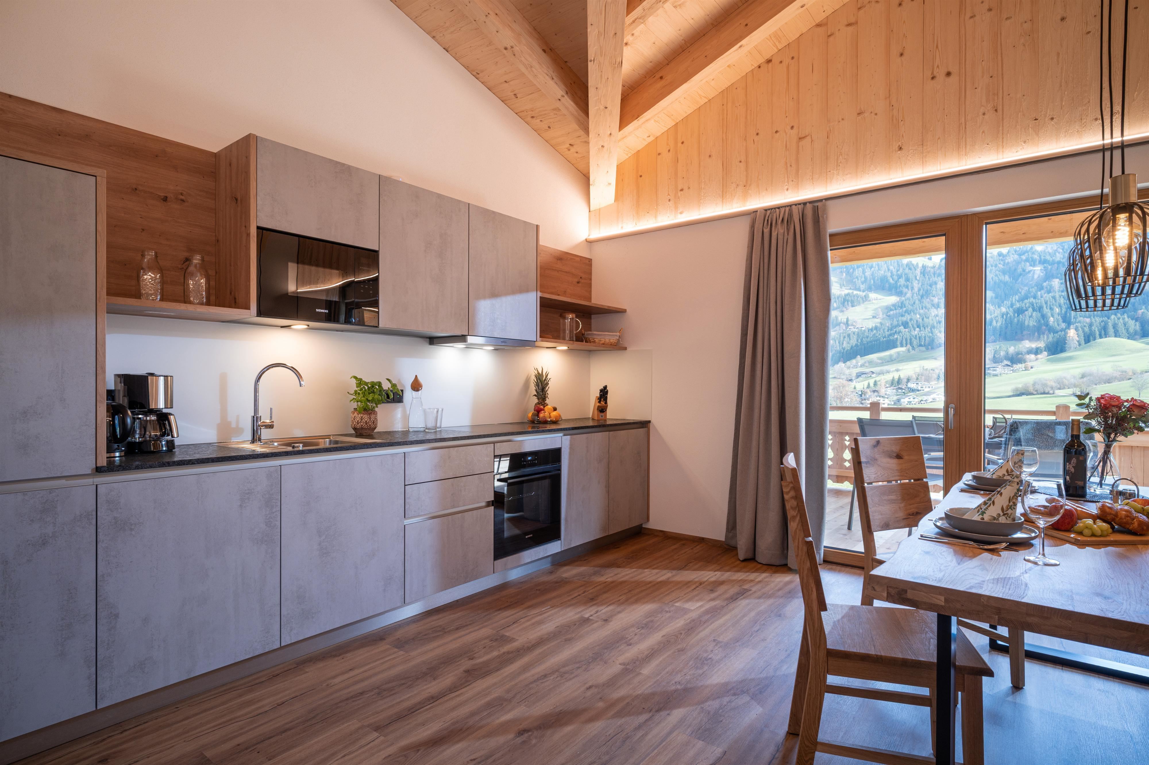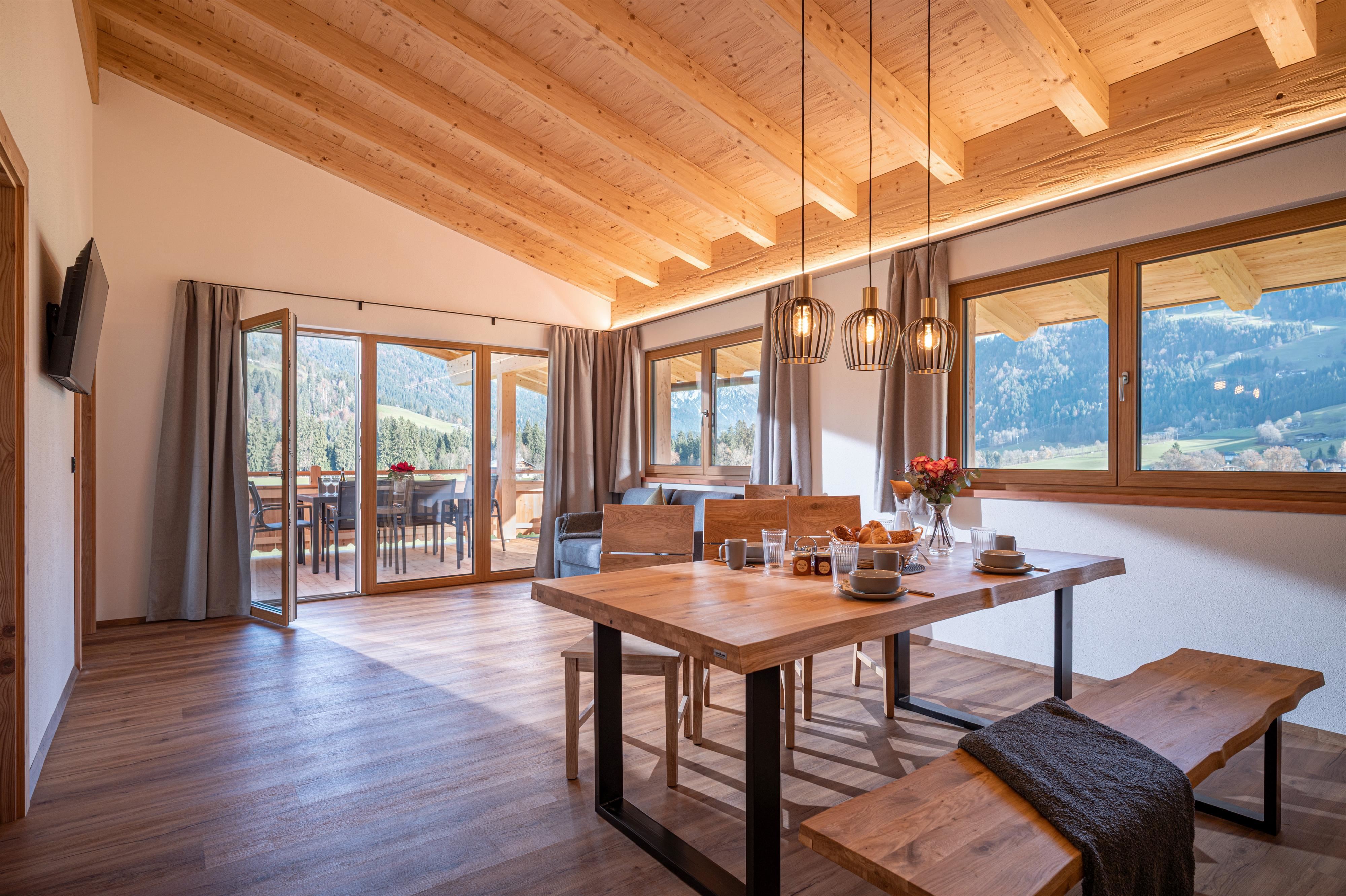 Het appartement Wilder Kaiser beschikt over 2 aparte slaapkamers, elk met een tweepersoonsbed, en een uitschuifbare slaapbank voor 2 personen in de woonkamer. Daarnaast is er een badkamer met douche en een apart toilet beschikbaar.
