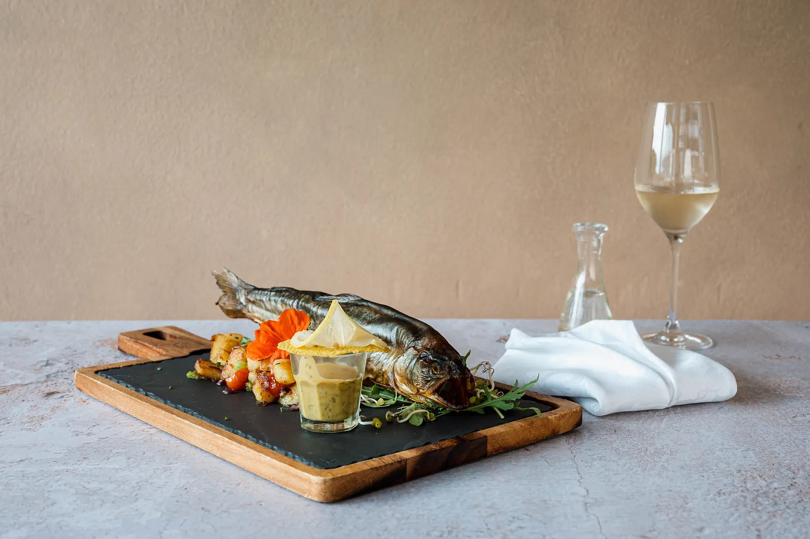 | 10. oktober 2025 | vanaf 18:00 uur | VIS: Amuse-gueule – Groet uit de keuken | Vissensoep Bouillabaisse met knoflookbrood | Black Tiger garnaal gebakken in kruidenboter op Italiaans palmkool-risotto | Een zelfgestookte schnaps | Filet van beekridder ontmoet zalmforel op belugalinzengroenten, met citroenschuim | Solero-fruitdessert geserveerd in een glas | Gebakken kastanjes | 52,00€ | Contact |