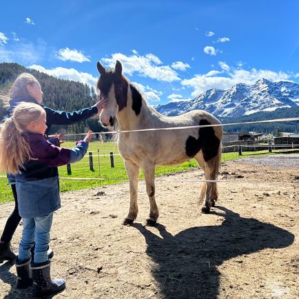 Begeleid paardrijden op de eigen ruiterbaan, 1-2 keer per week 's avonds met onze kindvriendelijke paarden "Kokosch", "Indian" en "Kamilla" (per rit/kind € 12,- van juni tot augustus). In de maanden mei, september, oktober begeleid paardrijden op aanvraag.