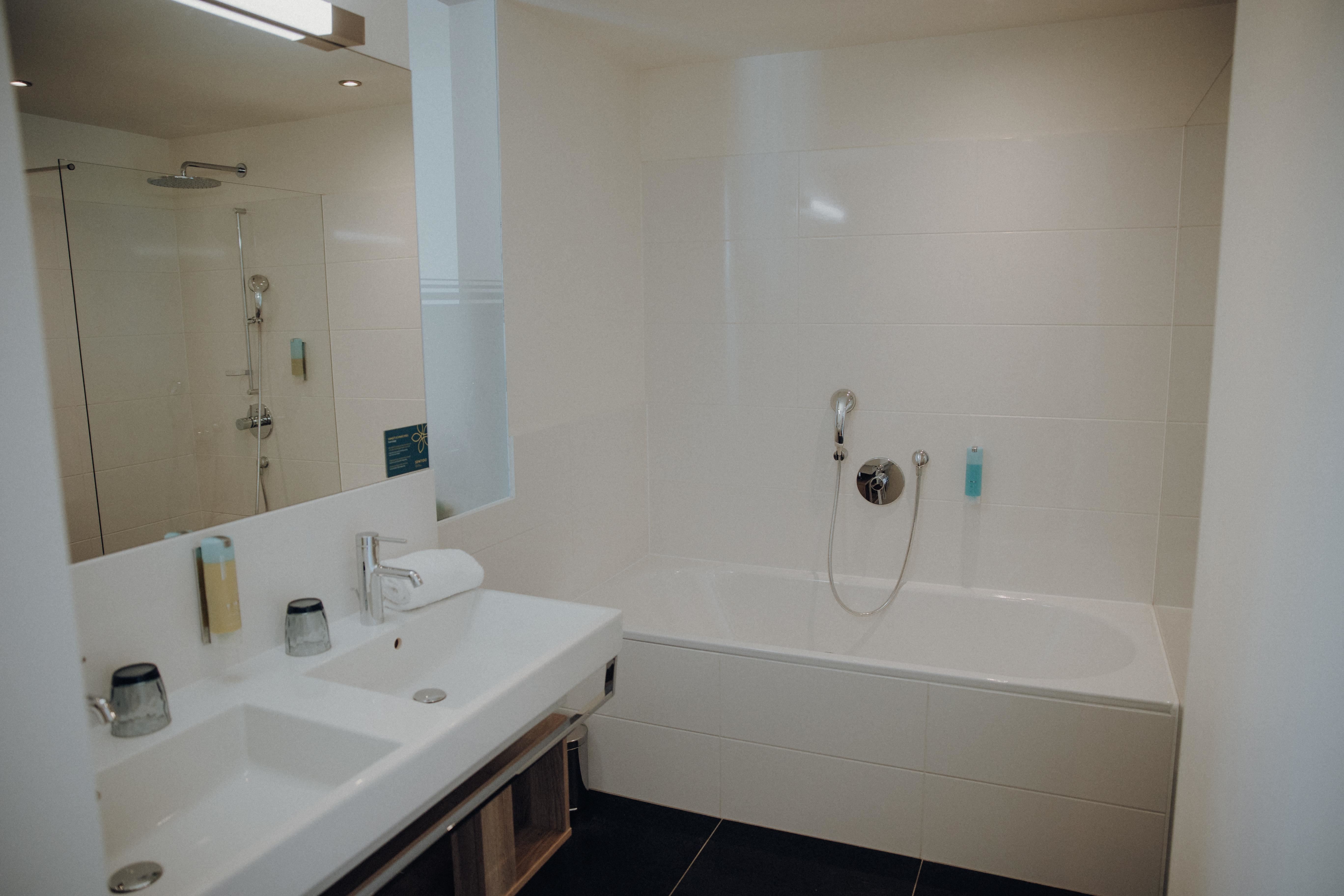 Logies in een nieuwe tweepersoonskamer met balkon, haardroger, moderne badkamer en inloopdouche, kluisje, SAT-TV, infotainment-system, gratis wifi, gratis wellnesscentrum