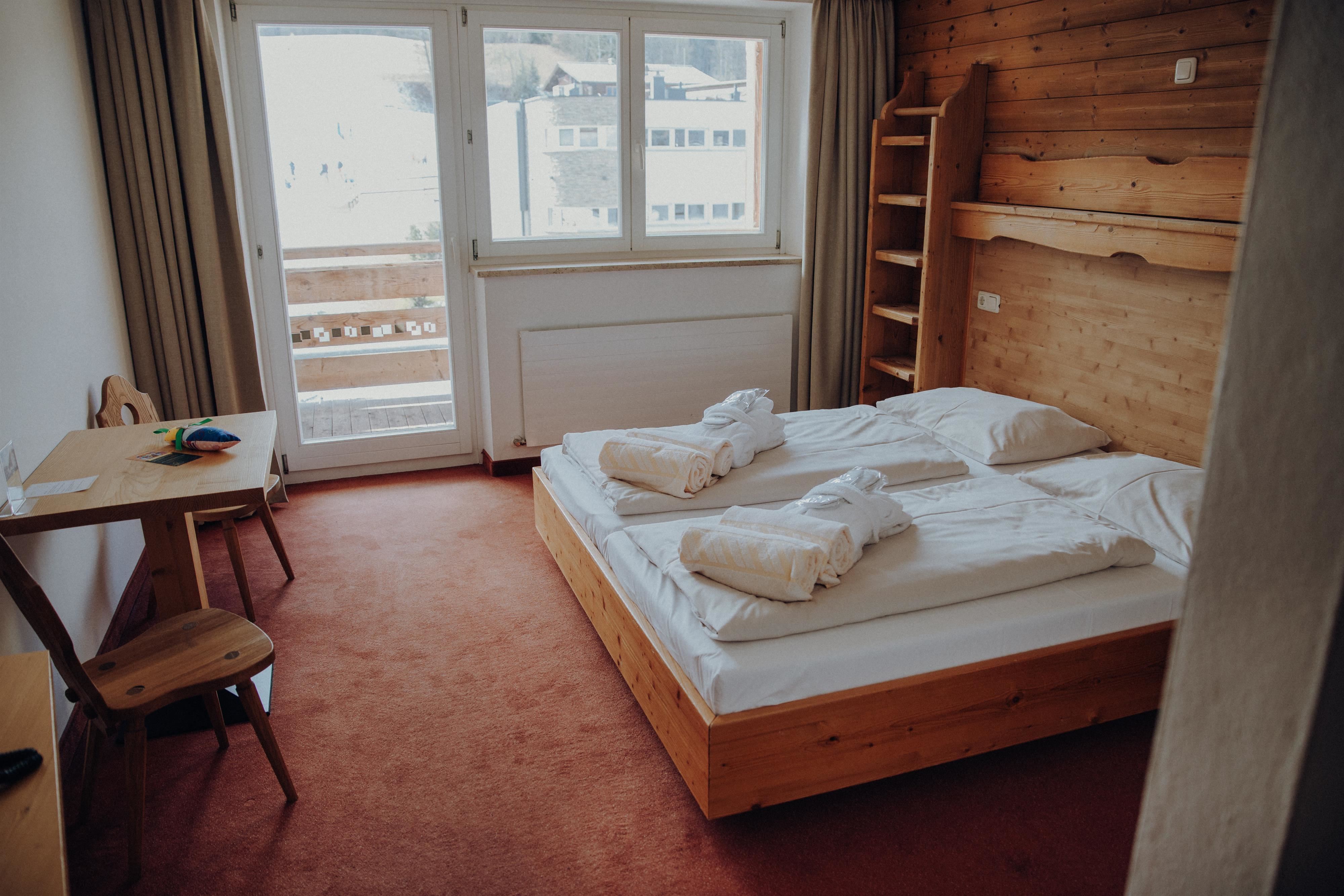 DZ ca. 20 m² met een tweepersoonsbed en een extra bed voor kinderen. Uitrusting: WC/douche, föhn, telefoon, flatscreen-sat-tv, gratis wifi & infotainmentsysteem, balkon.