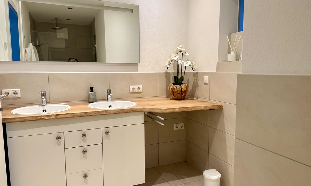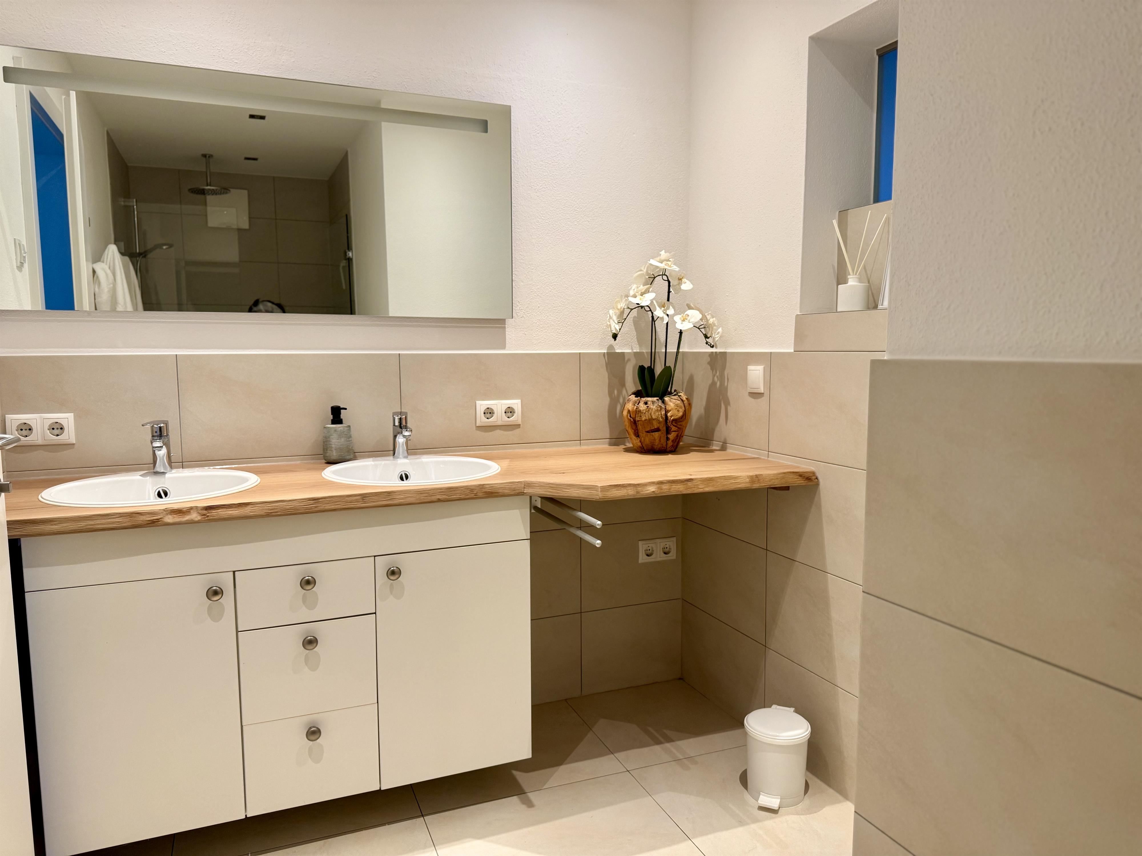 2 slaapkamers, 2 badkamers met douche en toilet, woonkamer met slaapbank, woonkeuken, hal (garderobe), berging, terras, tuin, carport voor 2 auto's + parkeerplaats