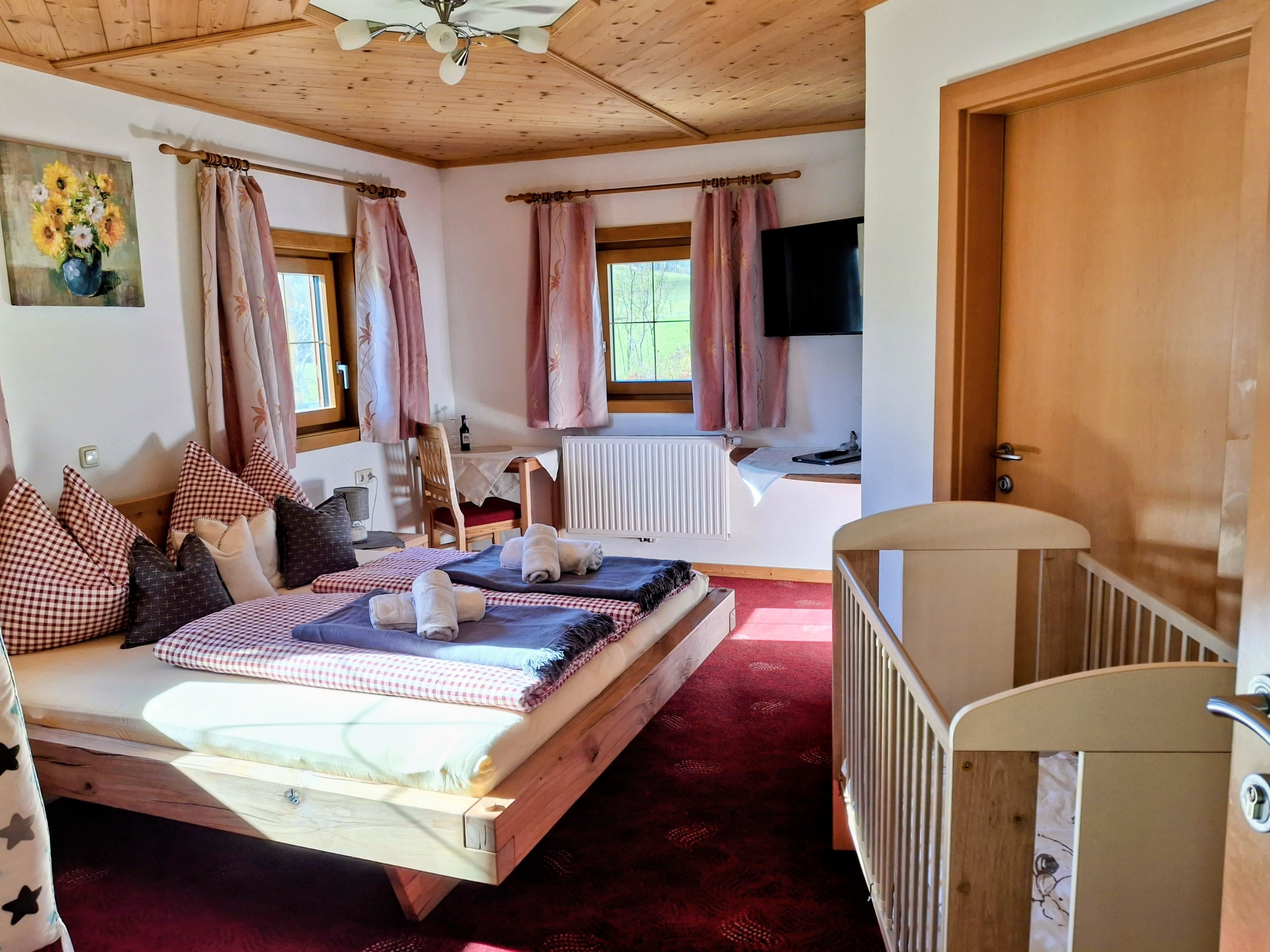 Onze Zimmer met ontbijt bieden een gezellige sfeer, ideaal voor gezinnen of zakenreizigers, stellen, iedereen is welkom. In het huis zijn er maar 3 verschillende kamers. De tweepersoonskamer en de 3-persoonskamer hebben de badkamer op de gang. U kunt de kamers afzonderlijk of als gezin boeken, we adviseren u graag.
