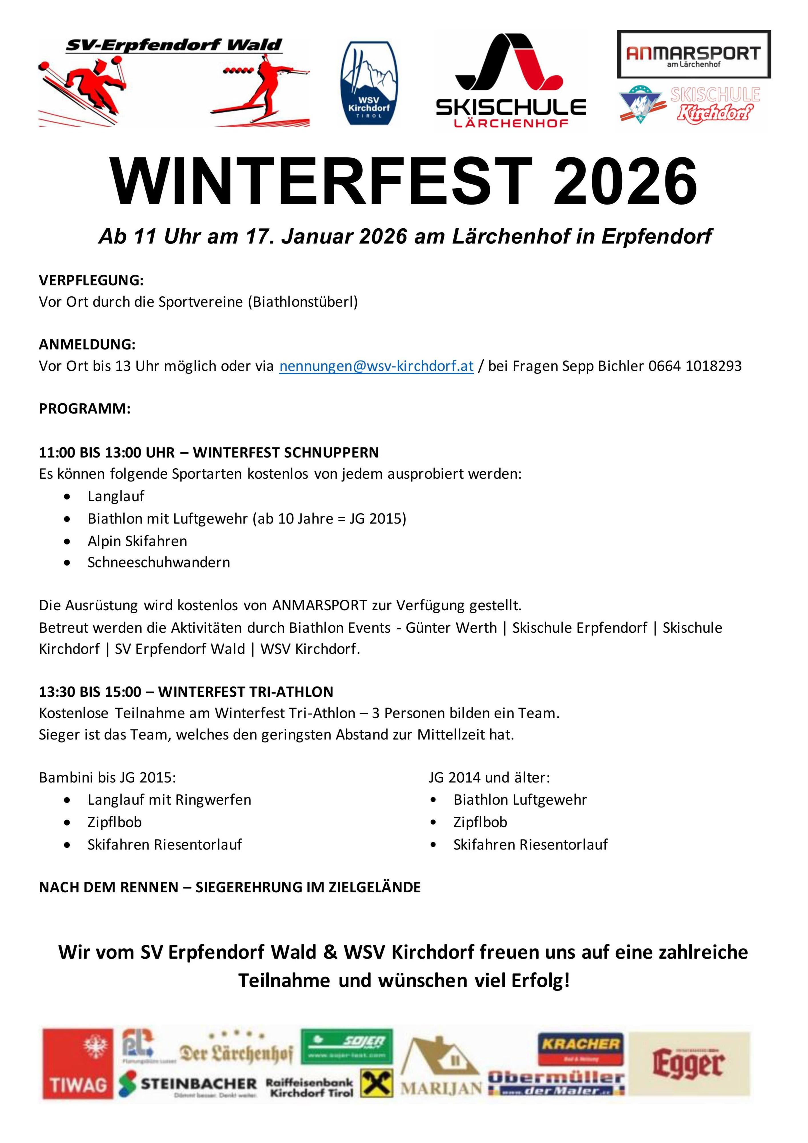 De activiteiten worden begeleid door Biathlon Events - Günter Werth • Skischool Erpfendorf • Skischool Kirchdorf • SV Erpfendorf Wald • WSV Kirchdorf.